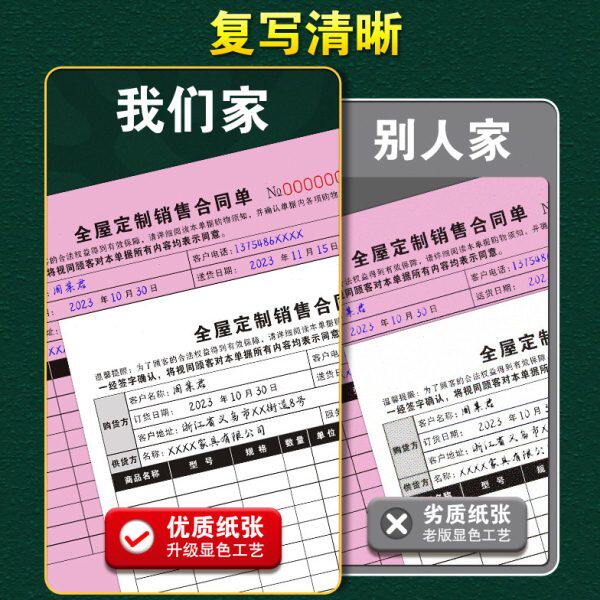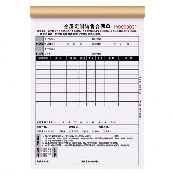全屋定制合同二联装修销售订单表订制2连衣柜安装验收收据2联商品