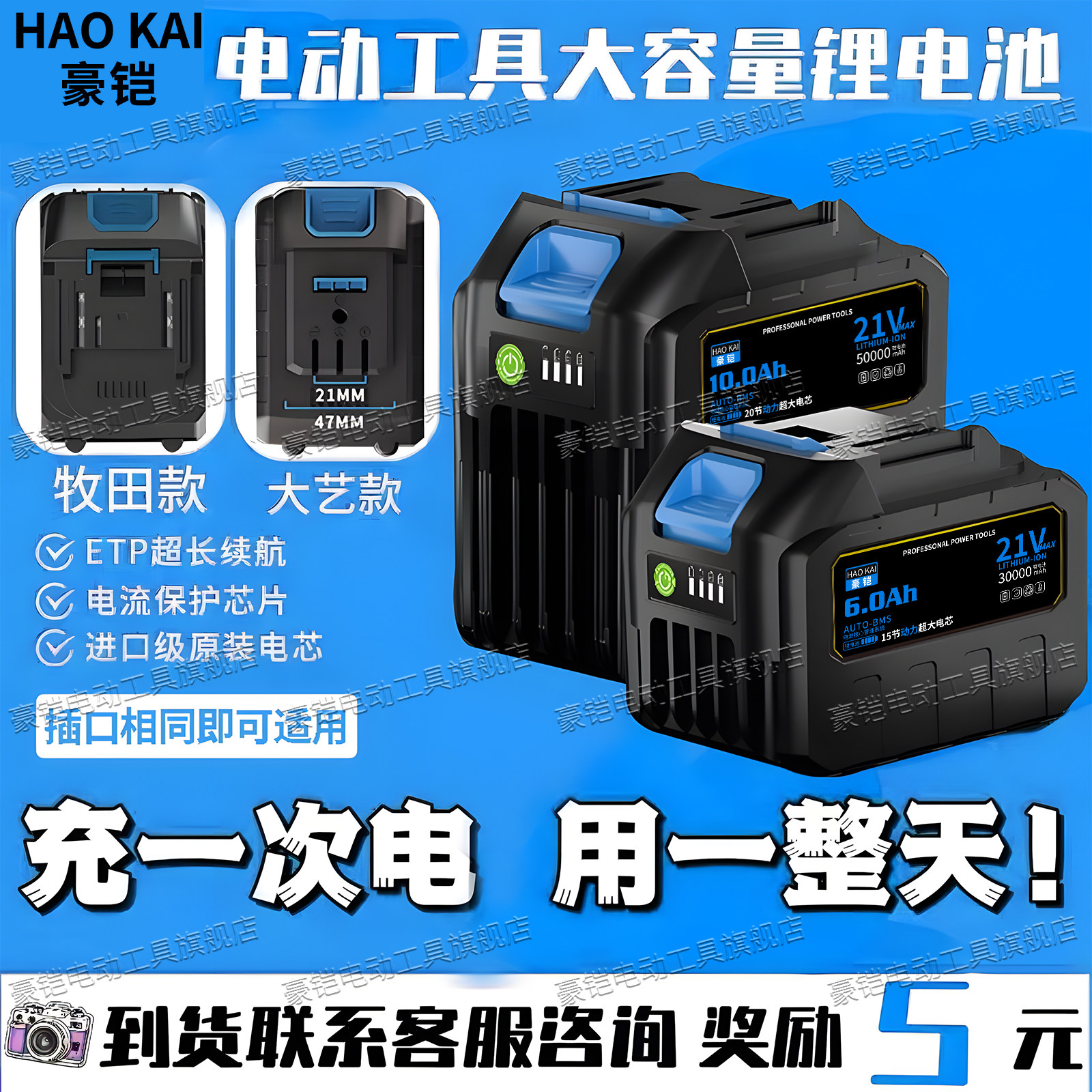 豪铠正品适用牧田大艺21V通用大容量充电式高倍率锂电池电动工具