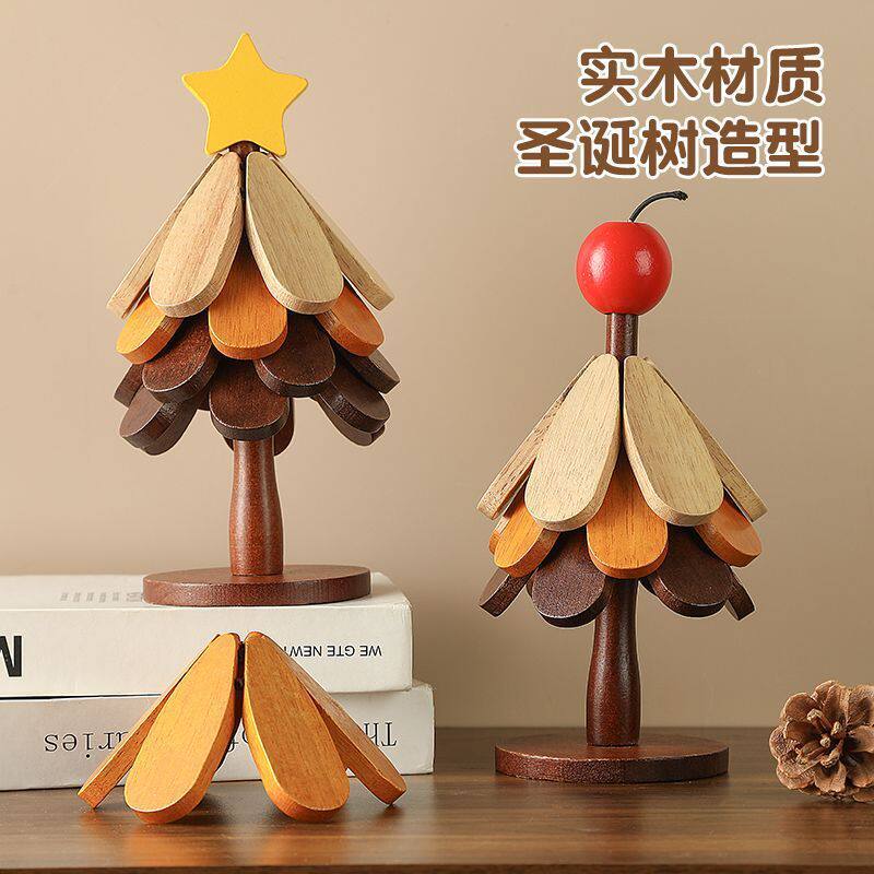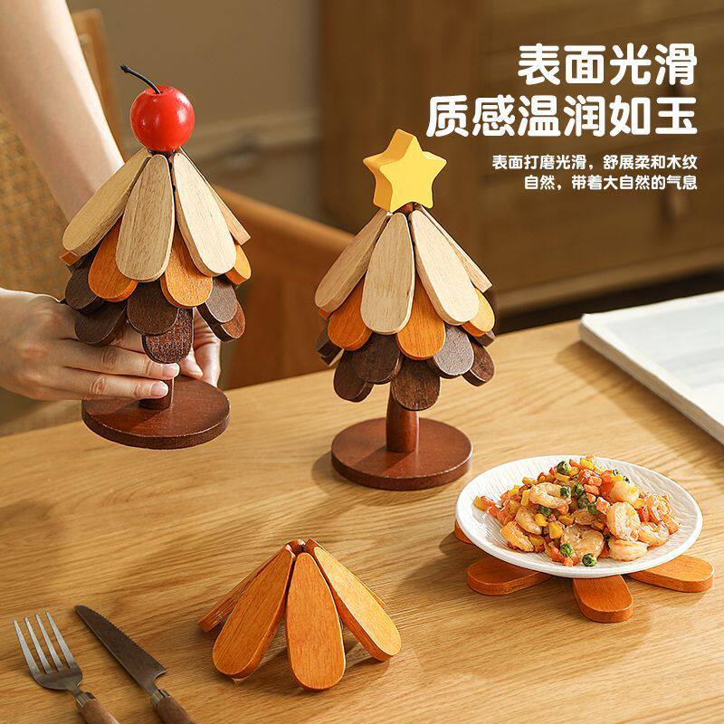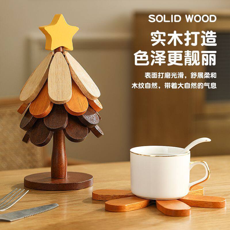 圣诞树隔热垫创意餐垫桌杯垫实木乔迁防烫耐高温锅垫餐边摆件装饰