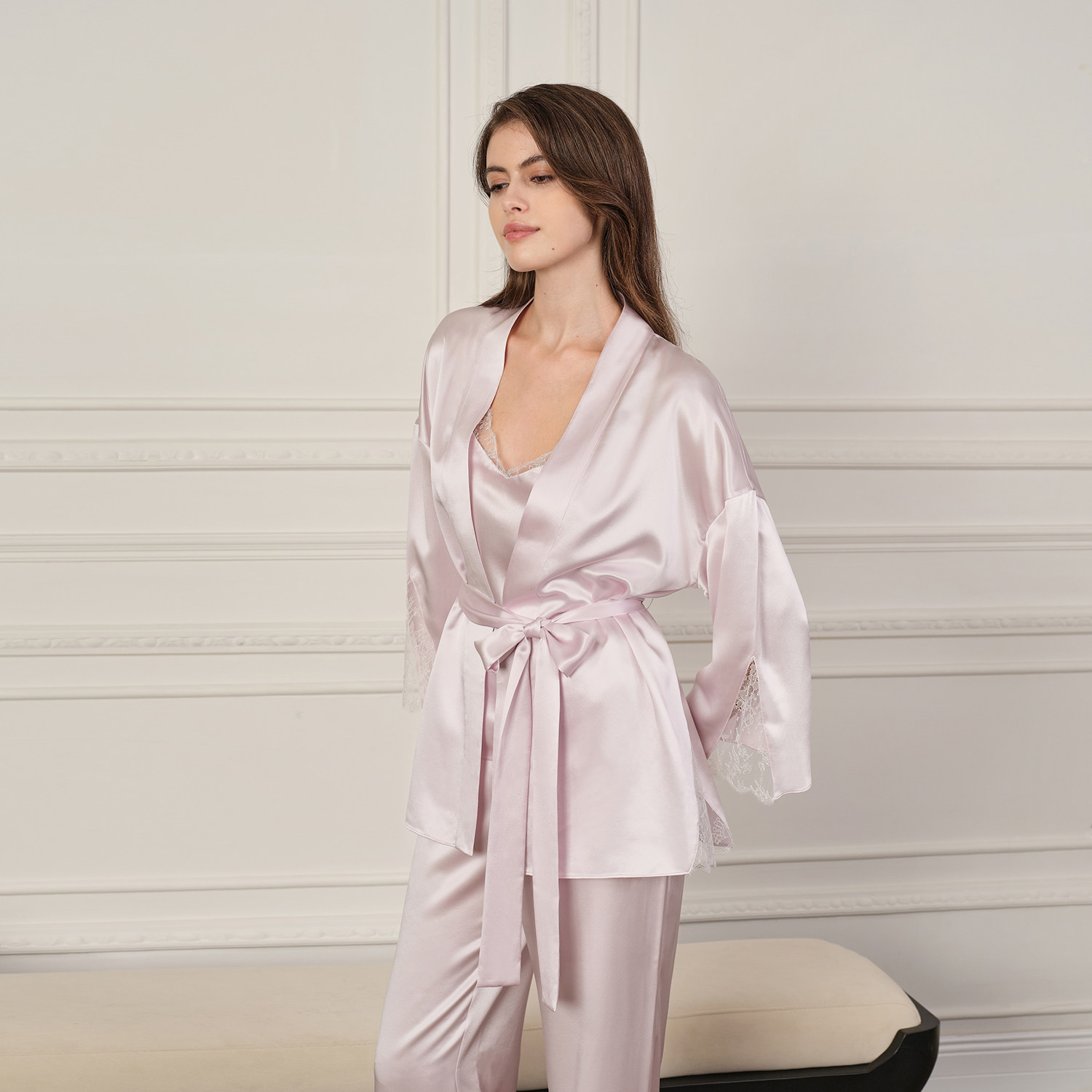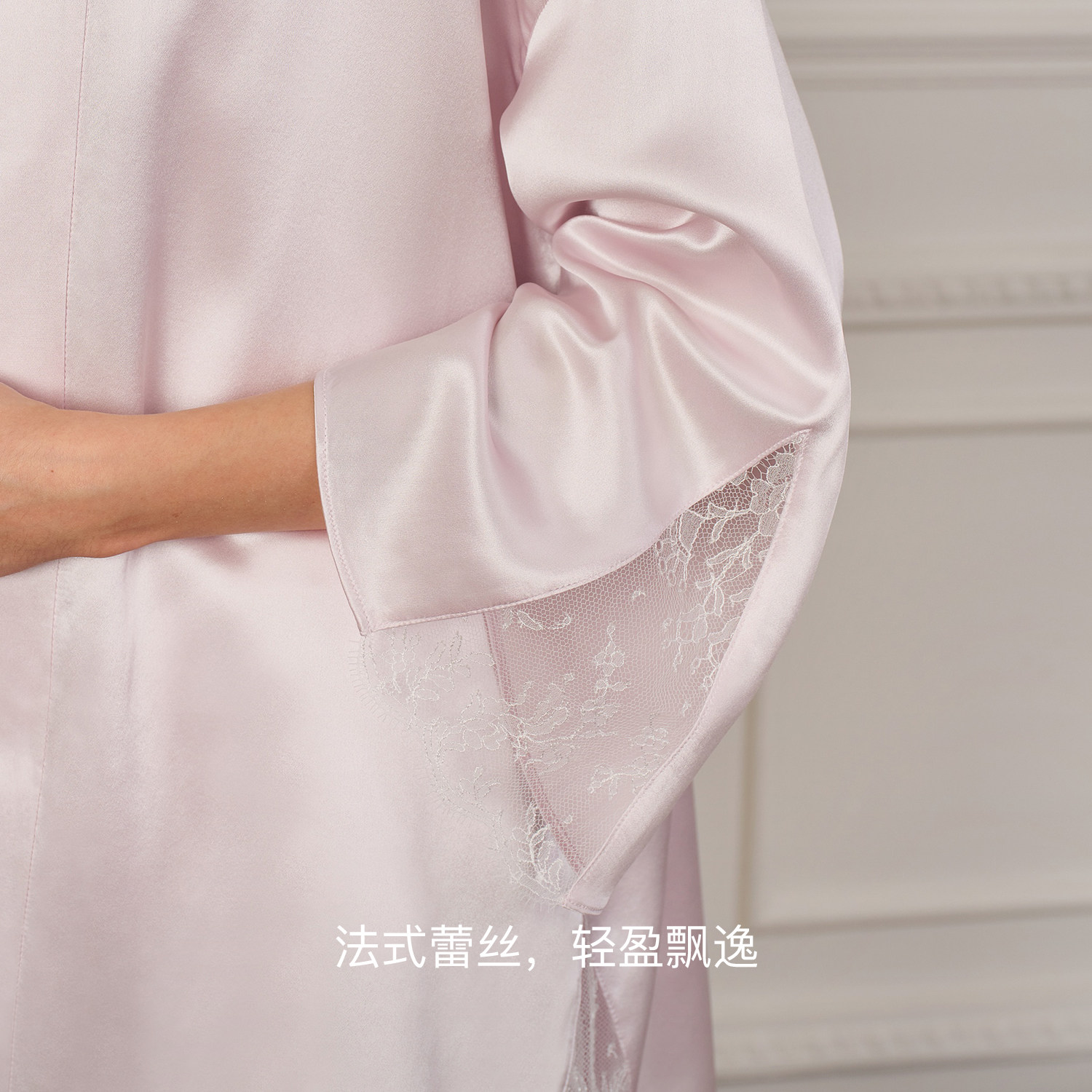SILKY MIRACLE真丝蕾丝家居服Oriental桑蚕丝短睡袍吊带可外穿女