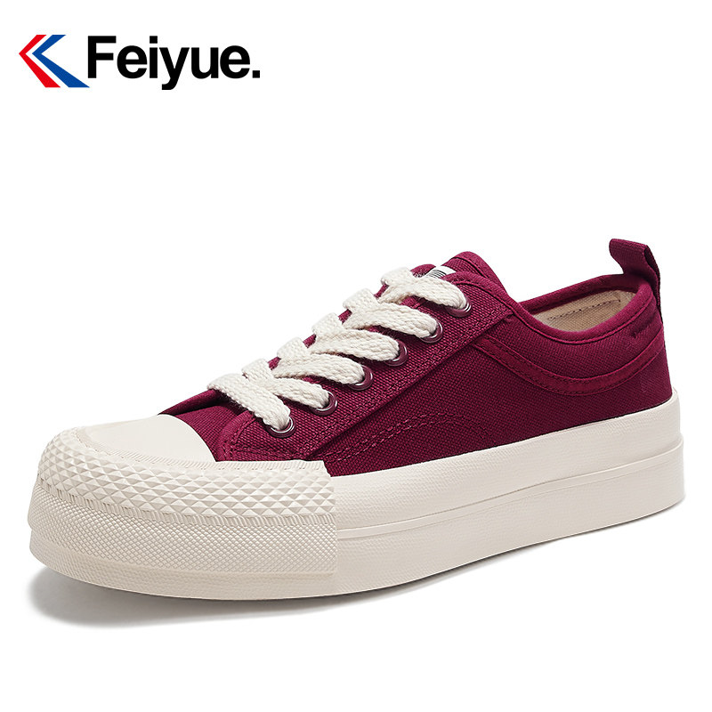 feiyue/飞跃官方酒红色帆布鞋女2024春夏新款简约百搭休闲板鞋960