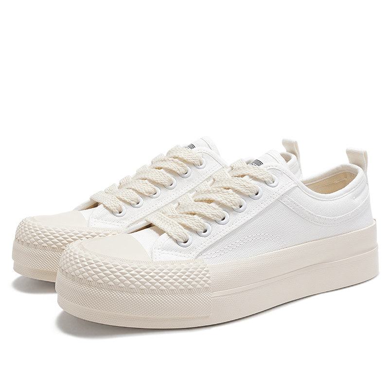 Wander around2025年秋季新款云朵系列白色羽毛厚底增高帆布鞋女