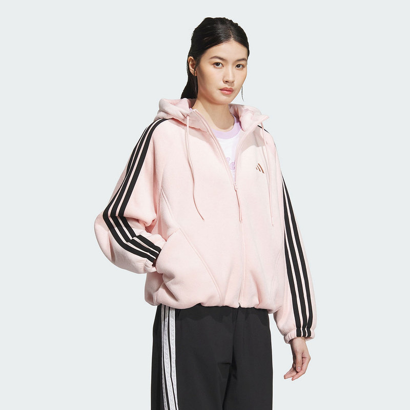 adidas阿迪达斯三条纹舞动系列花苞型连帽外套秋冬女夹克KB7605