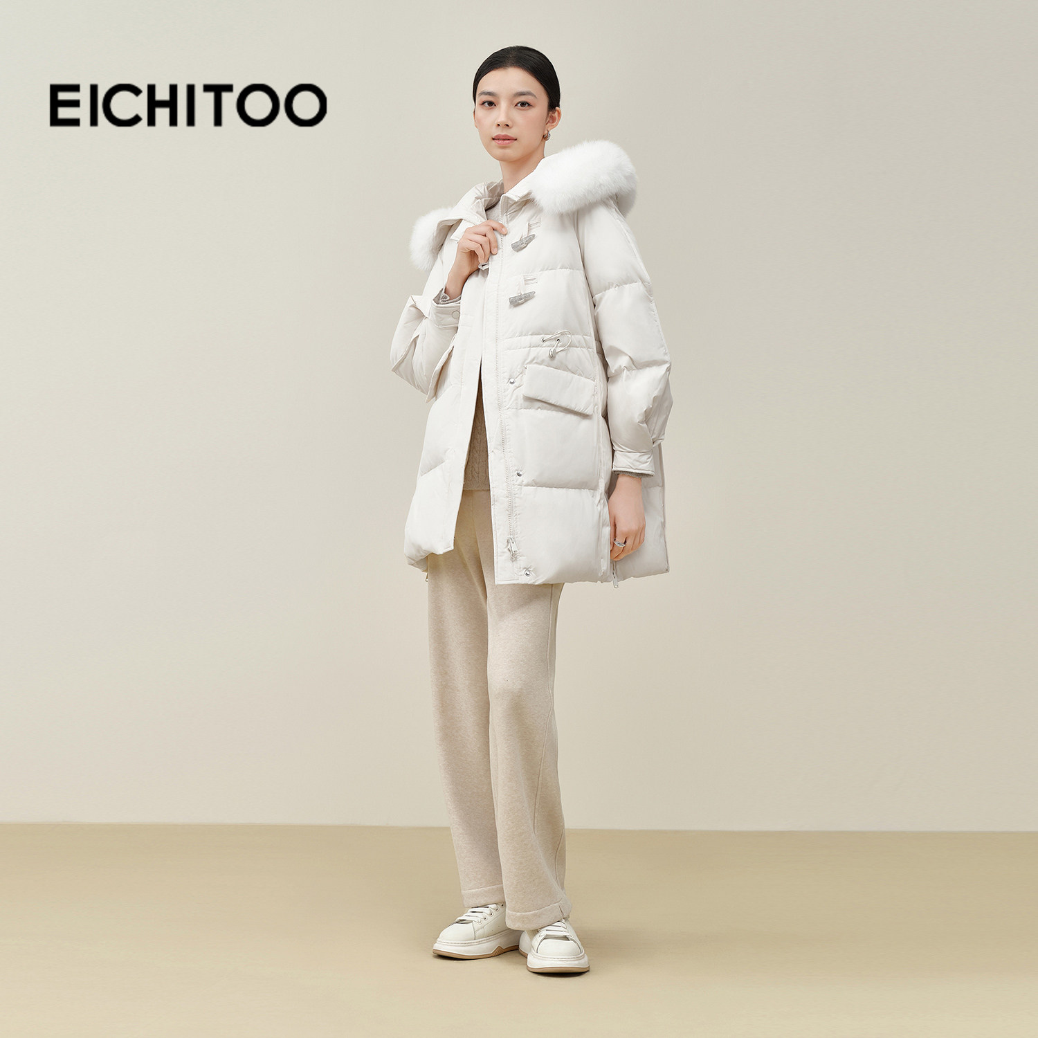 爱居兔冬季新款时尚羽绒服女2025年冬季新款带毛领保暖连帽羽绒服