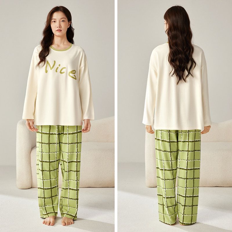 安比斯情侣睡衣舒适纯棉秋季女长袖男女同款休闲家居服套装可出门