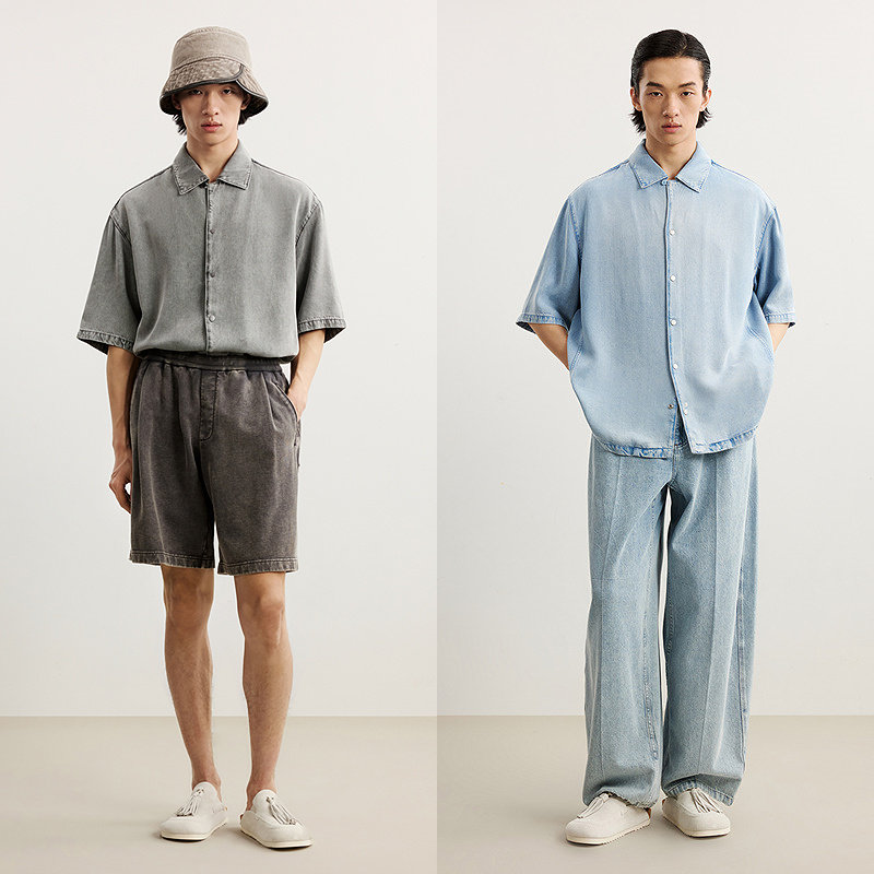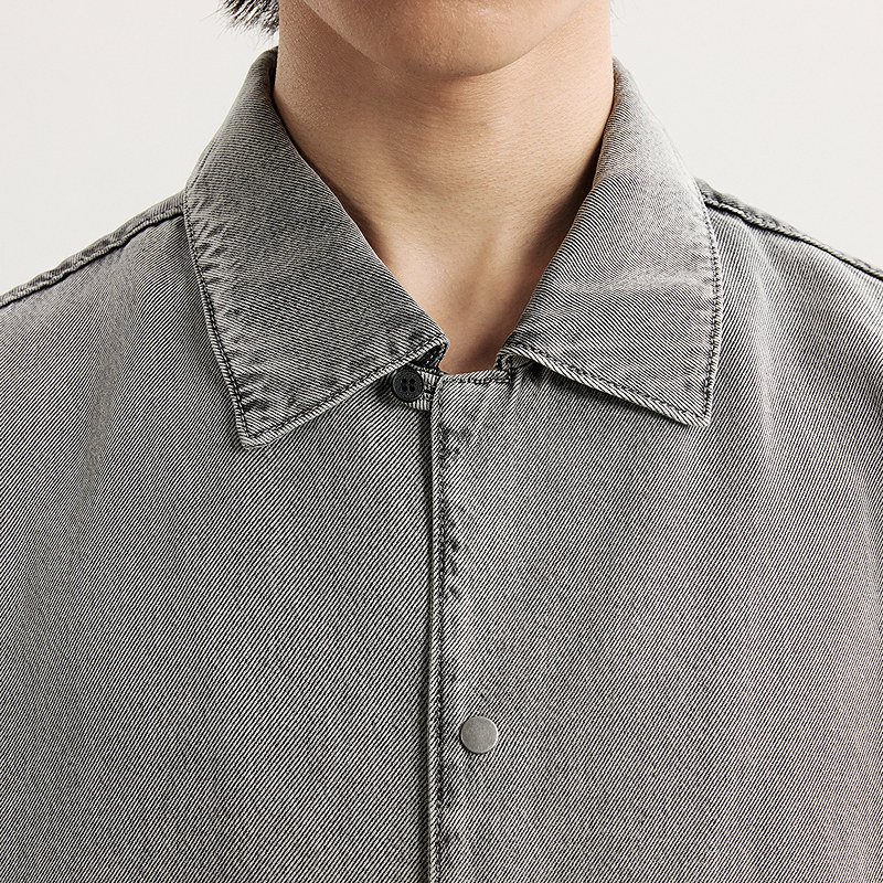 牛仔面料细腻顺滑,H型翻领时尚设计