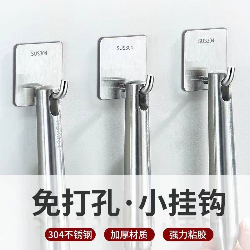 免打孔不锈钢粘钩强力无痕挂钩浴室毛巾挂衣钩厨房承重壁挂金属钩