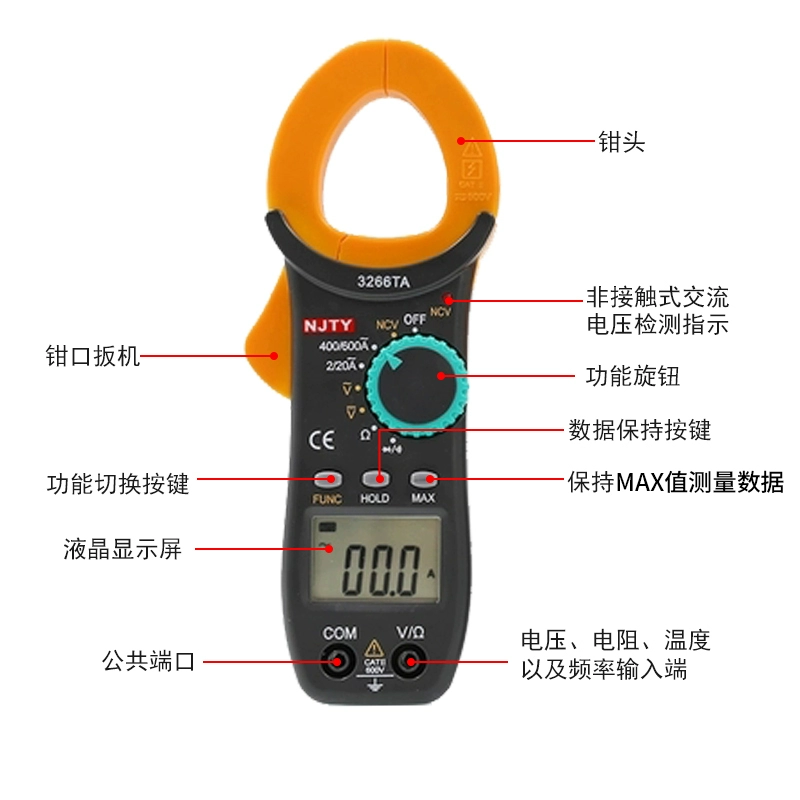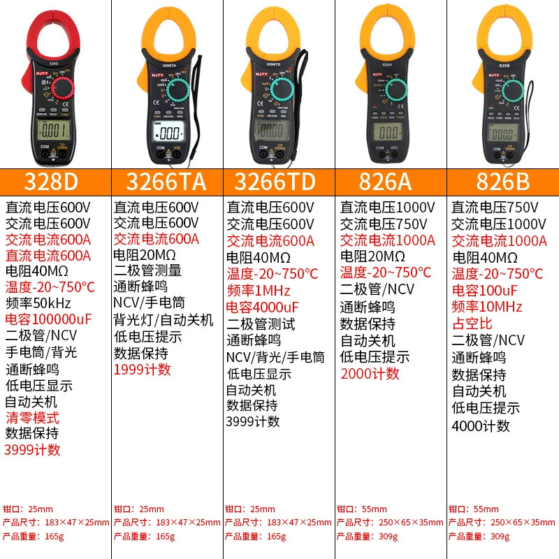 天宇数字多功能电流钳形表防烧电工3266TATD高精度万用表钳表直流