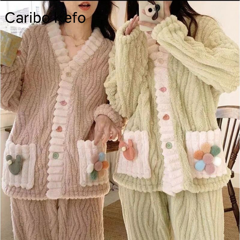 2025年冬款珊瑚绒睡衣女秋冬季加厚法兰绒加绒套装家居服春秋新款