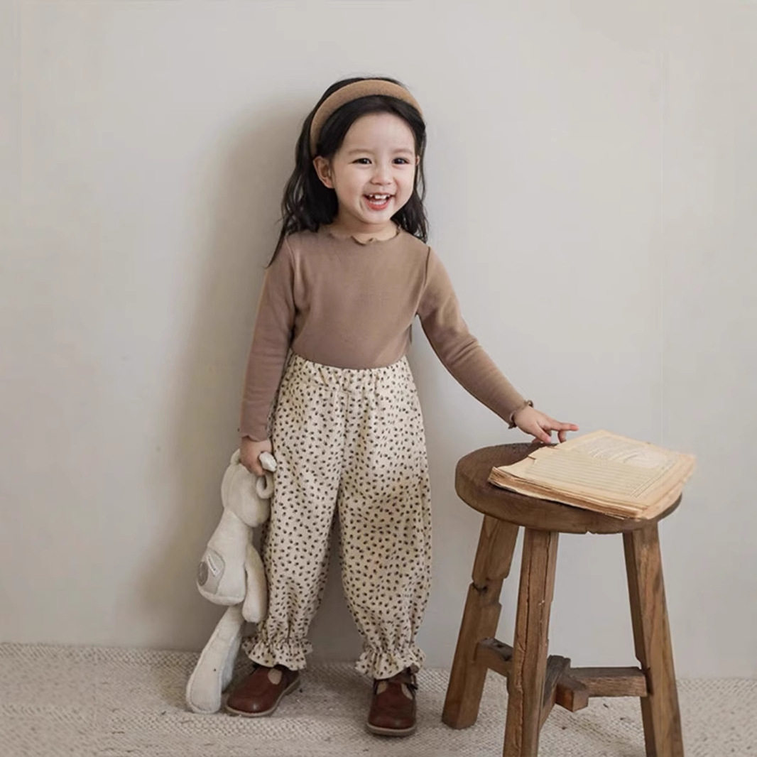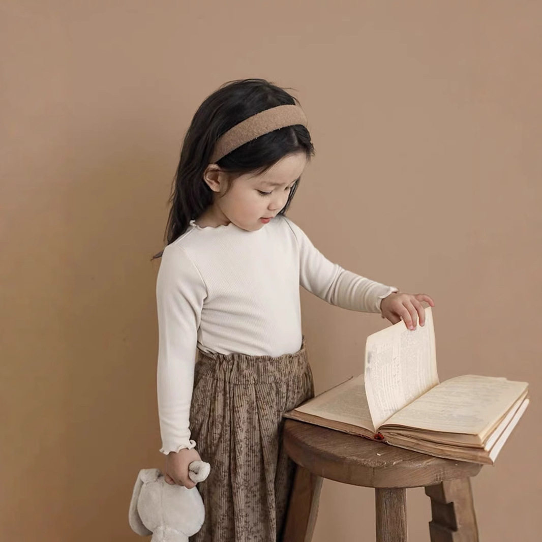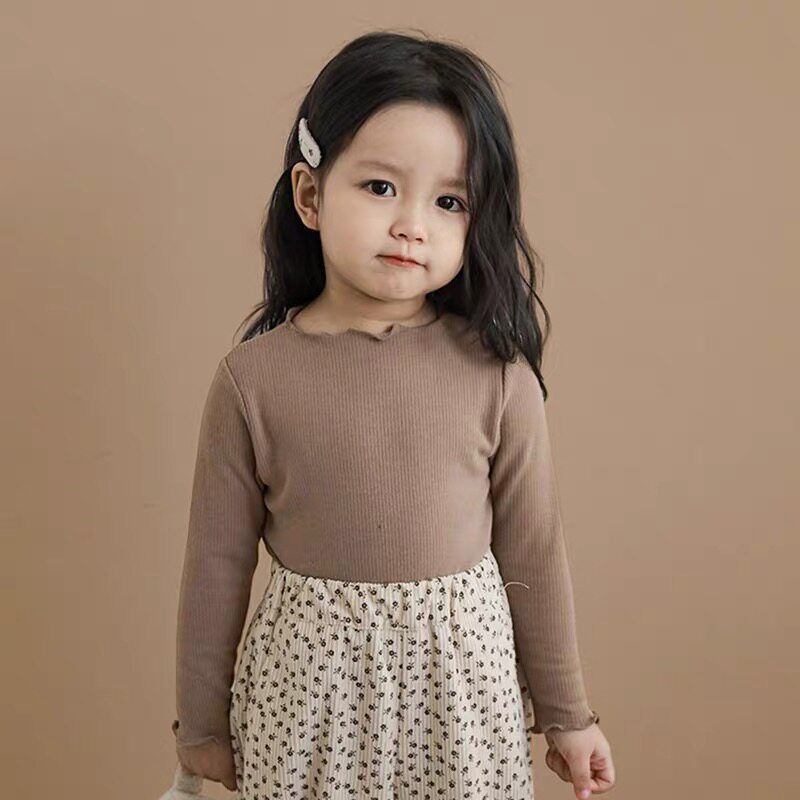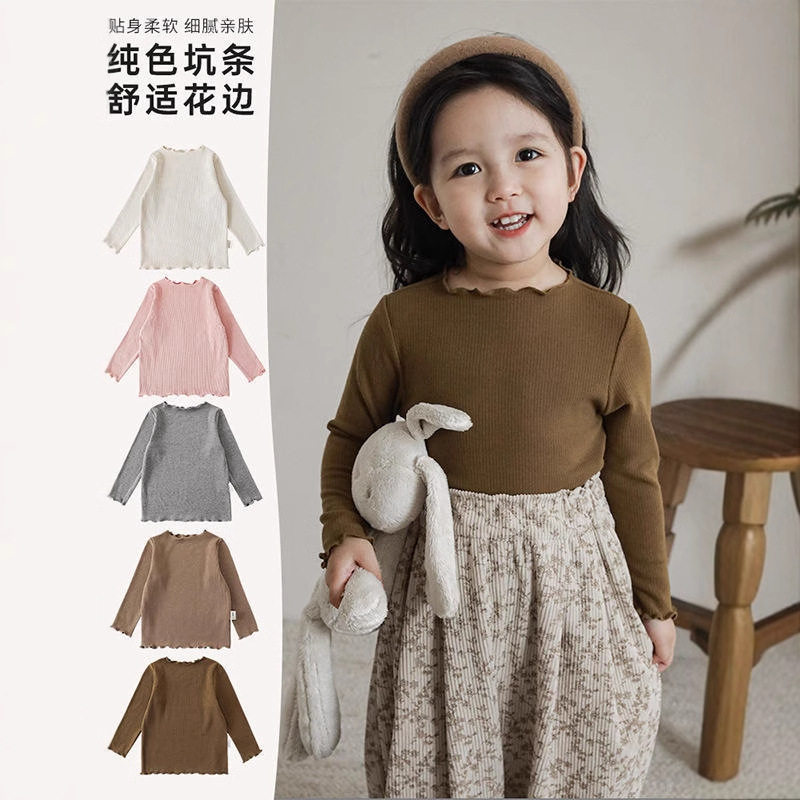女童打底衫2026新款春秋弹力木耳边小童装宝宝长袖T恤花边贴身