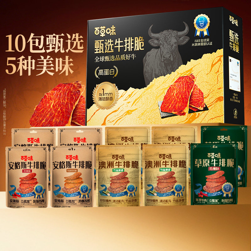 百草味牛肉干安格斯牛排脆风干牛肉零食牛肉脆片和牛肉牛脆脆肉片