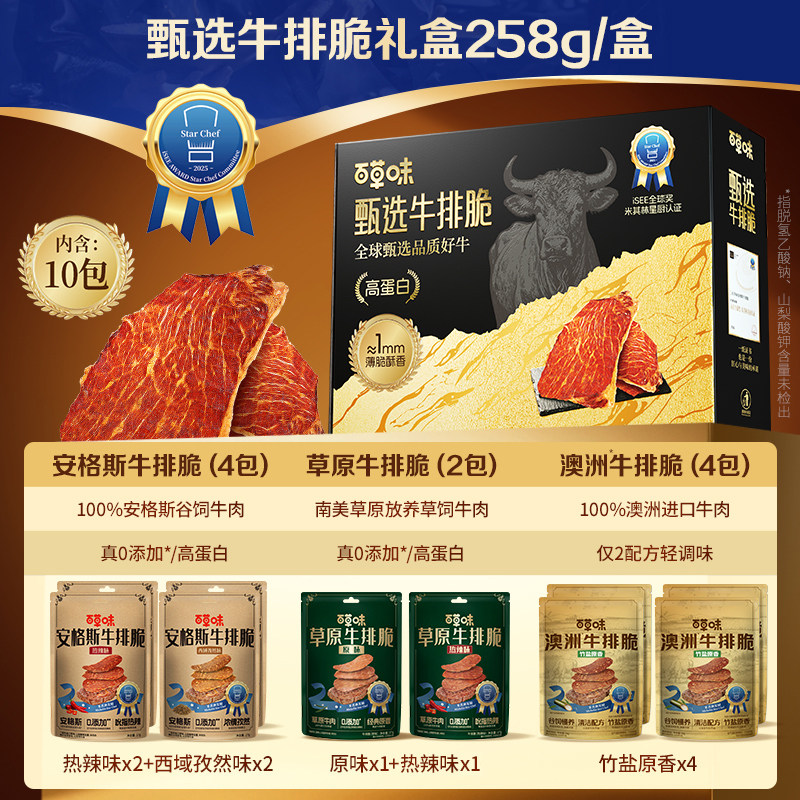 【年货节】百草味安格斯牛排脆礼盒风干牛肉干脆片零食送礼