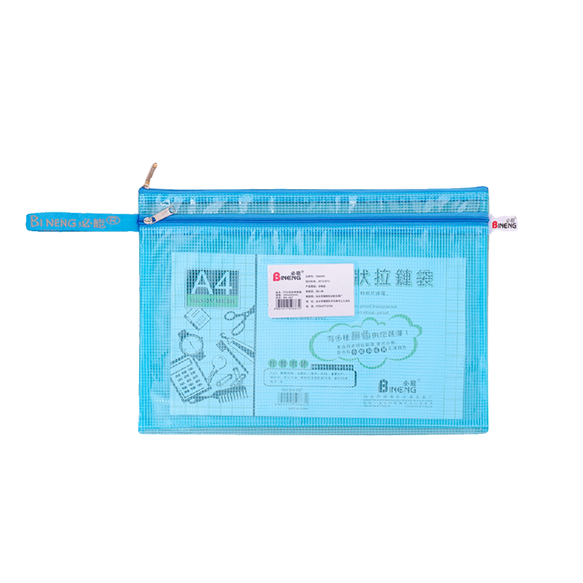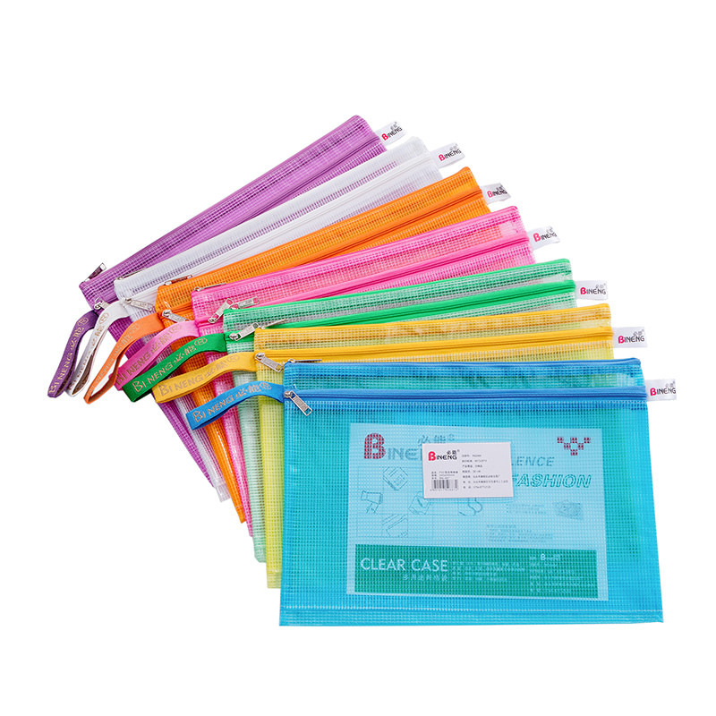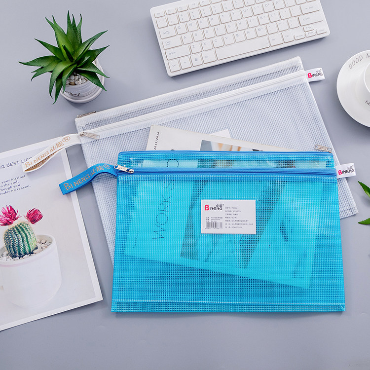 必能B4/A4/B5/A5双层网袋带标签卡名片卡位文件收纳案科目分类袋
