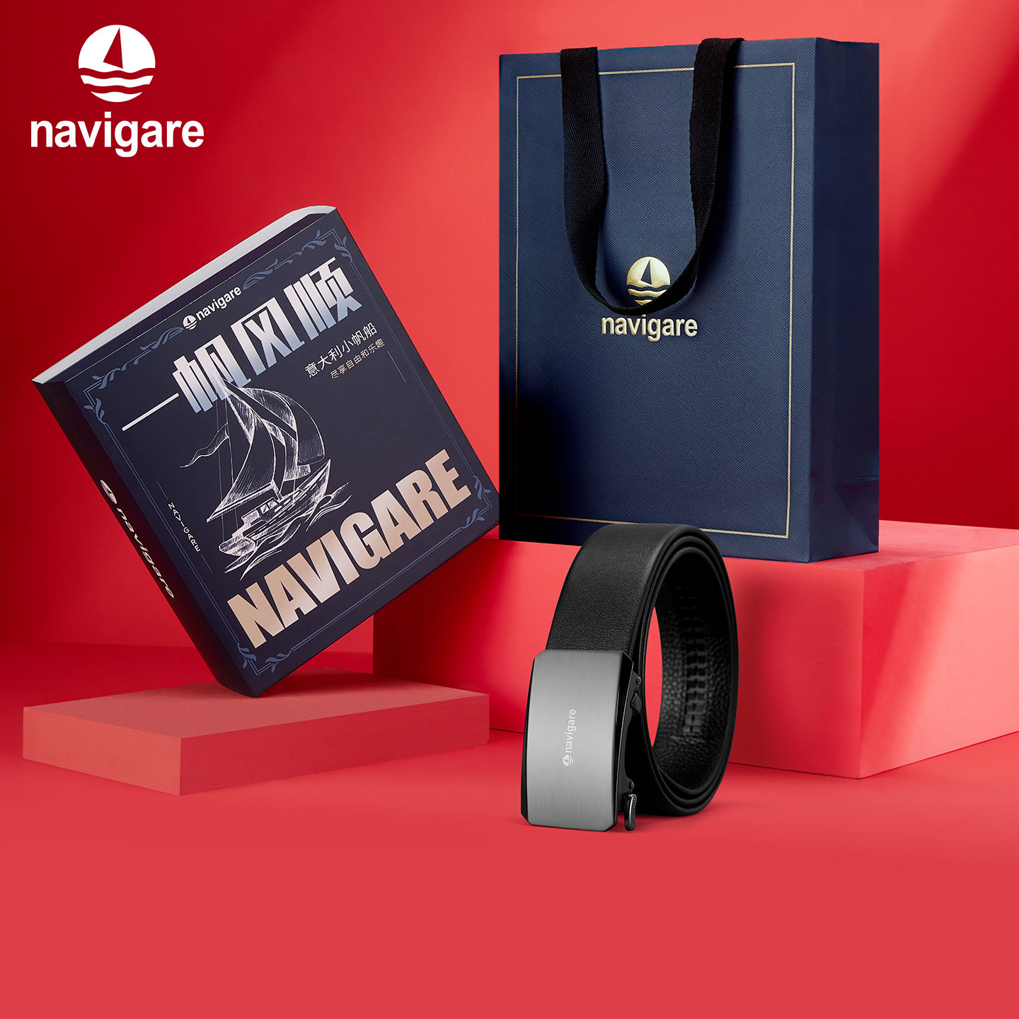 小帆船真皮皮带男士2026新款自动扣内扣不露带尾牛皮裤腰带爸爸