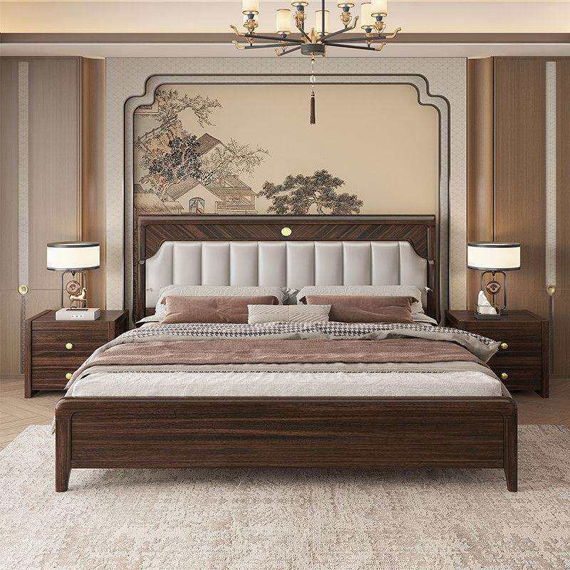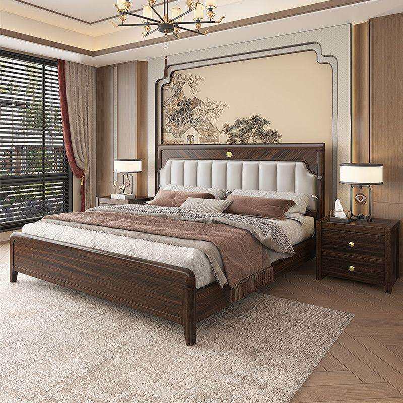 中式乌金木实木床.主卧现代简约双人床.婚床高箱储物大床1.8M床
