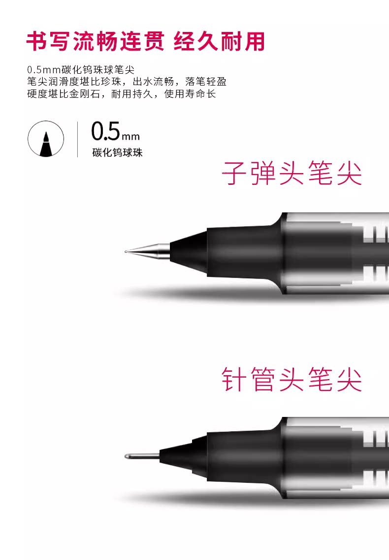 直液式速干走珠中性笔大容量0.5针管式水性笔学生考试签字黑色笔