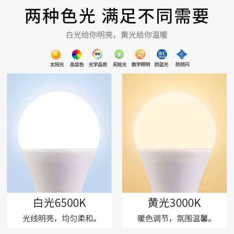 超亮led灯泡e27螺口家用暖光5W7W9W12W15W18W24W节能室内护眼吊灯