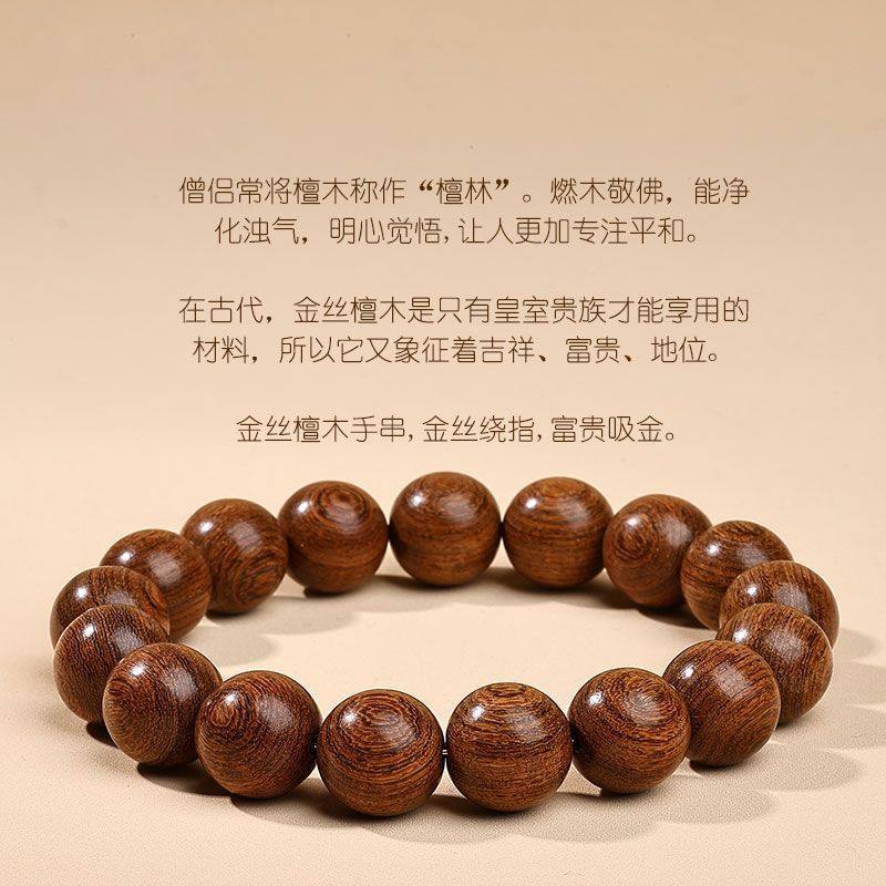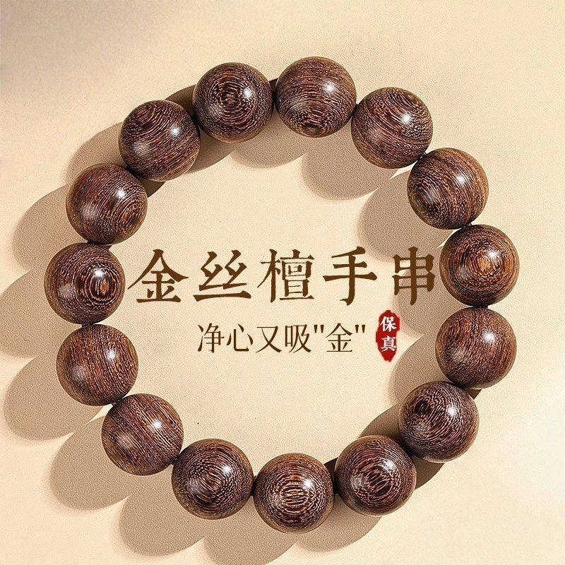 顺纹正宗金丝檀木手串女精品木质盘玩素珠圆满款小众佛珠手链男款