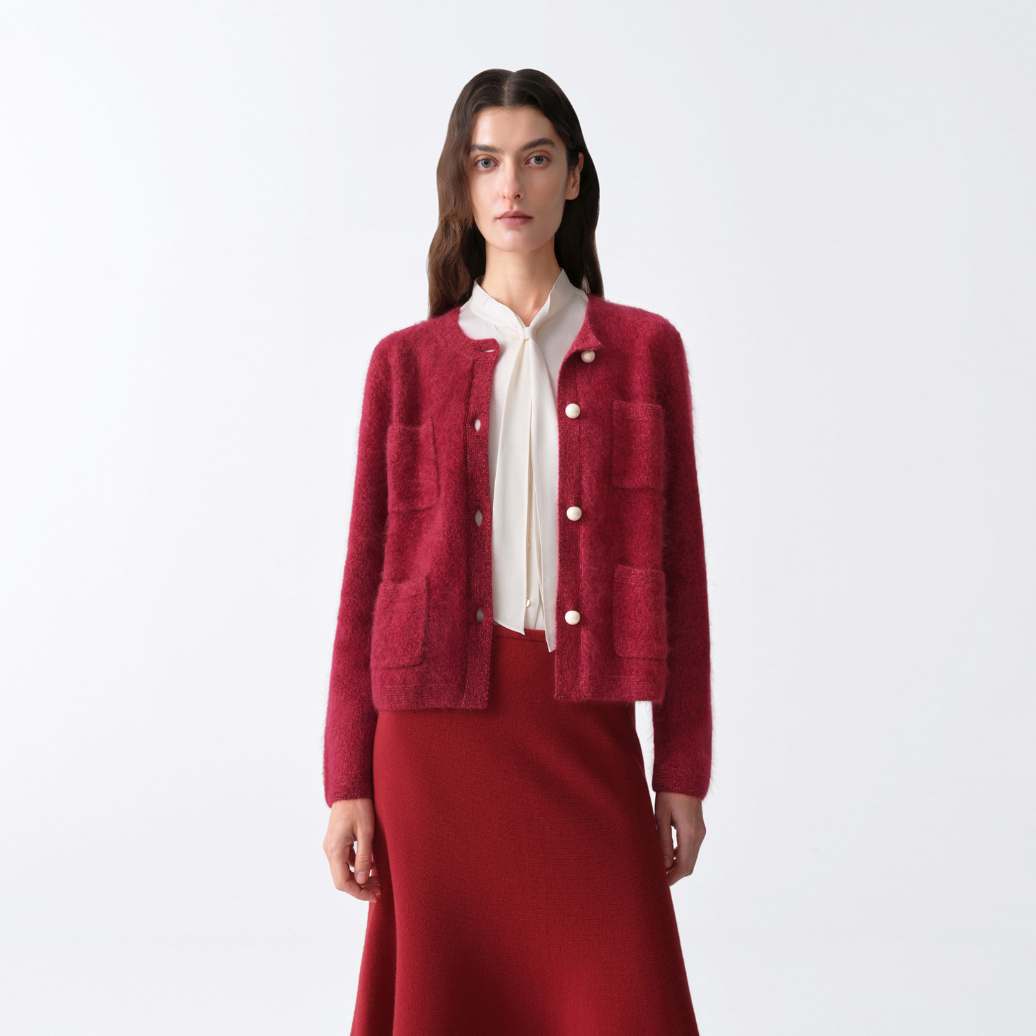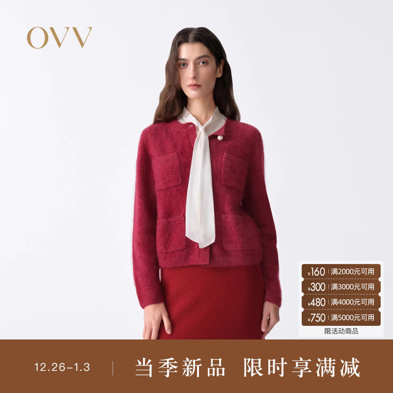 【新年红系列】OVV2026春夏新款女装拉绒羊绒衫开衫外套
