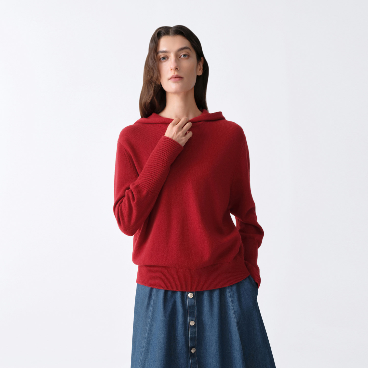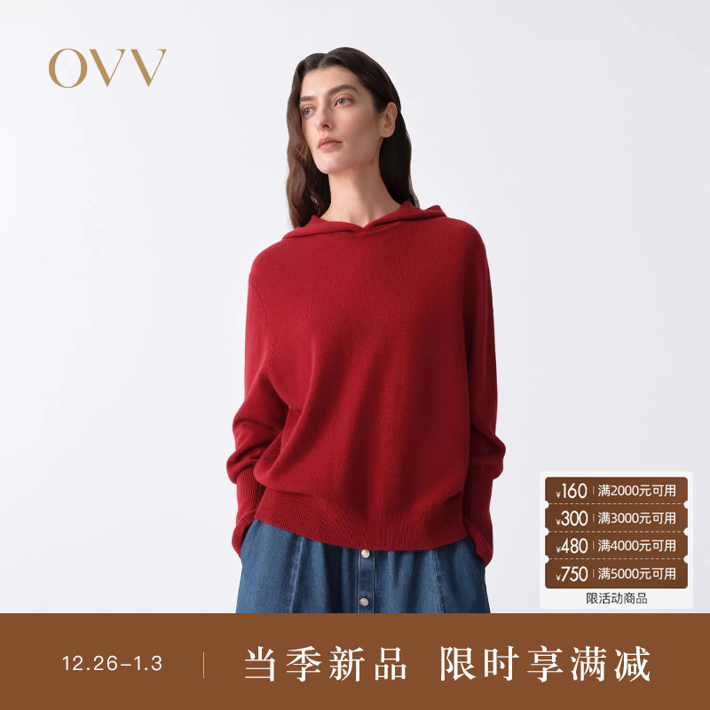 【新年红系列】OVV2026春夏新款女装柔软休闲套头连帽羊绒衫