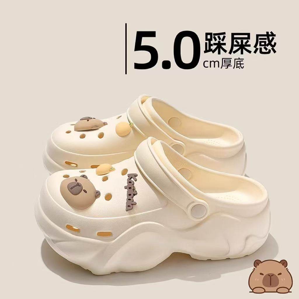 夏季外穿洞洞鞋女款2025新款海边沙滩踩屎感厚底增高防滑包头凉鞋