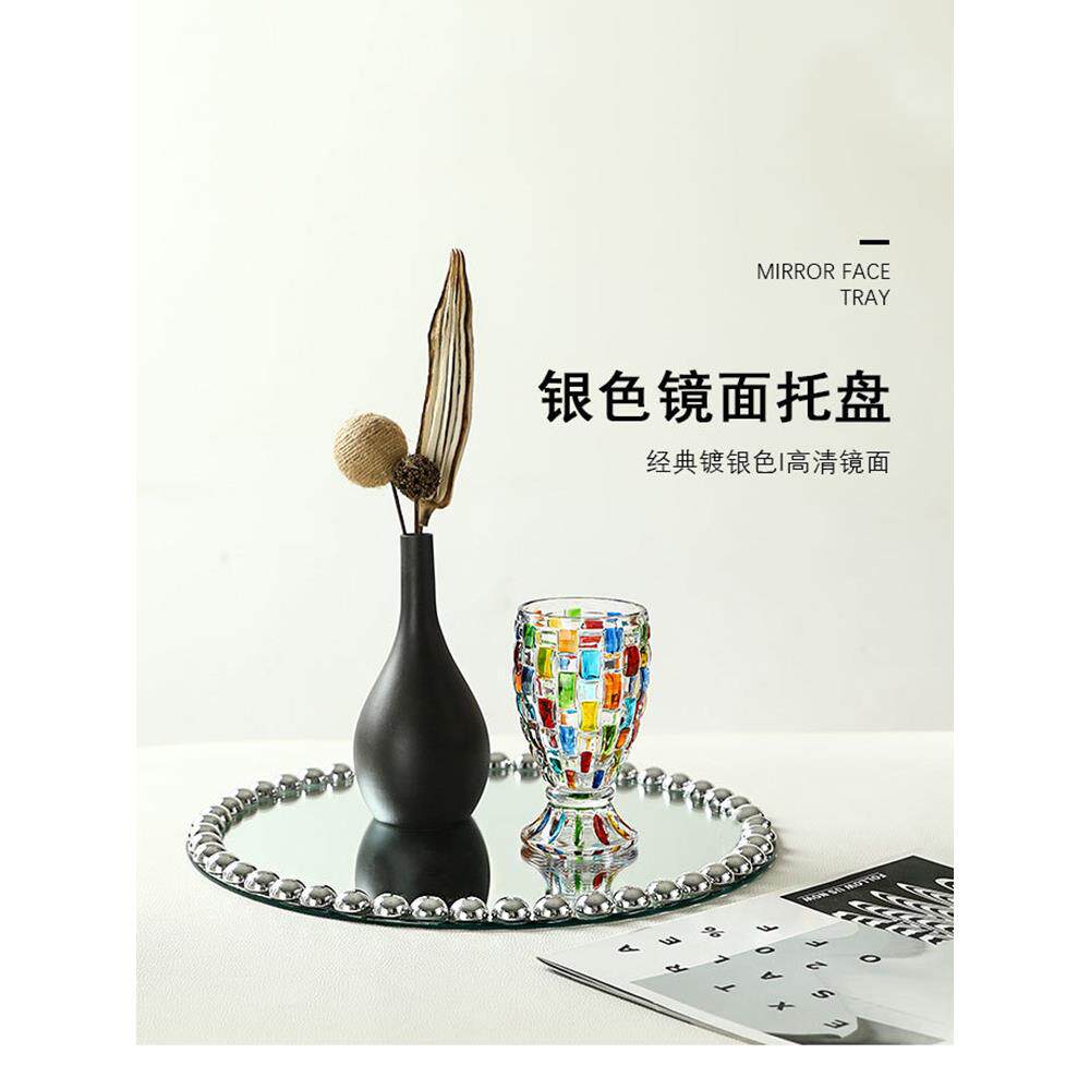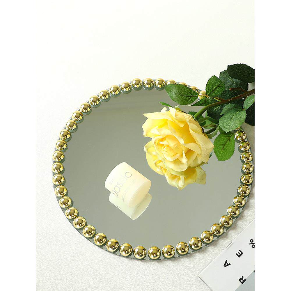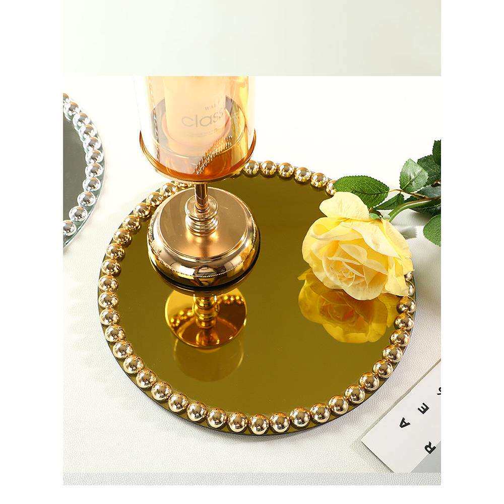 轻奢镜面珠珠盘宴会西餐盘垫婚礼装饰摆件托盘样板间餐桌吧台软装