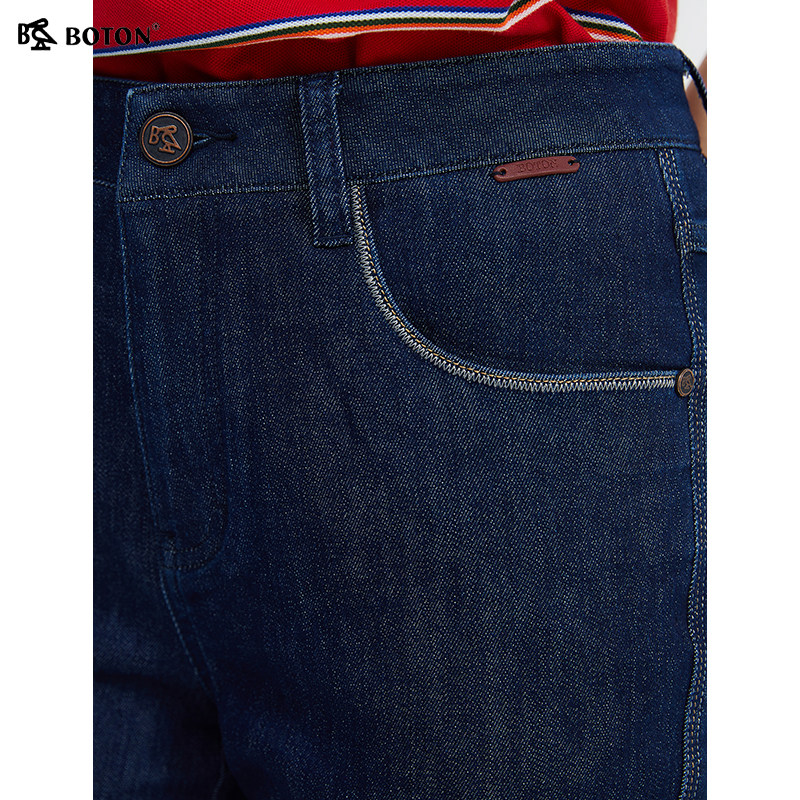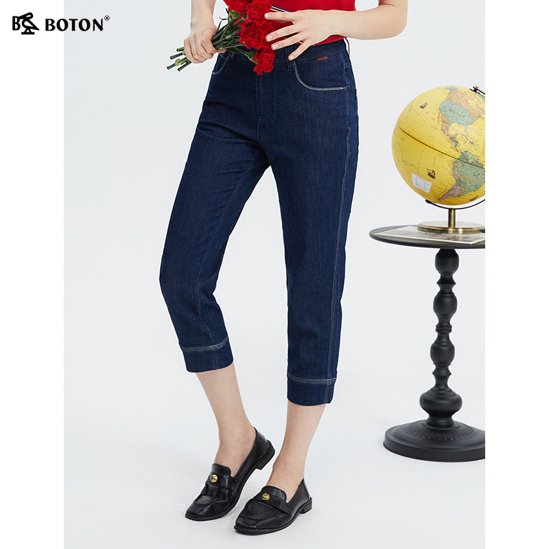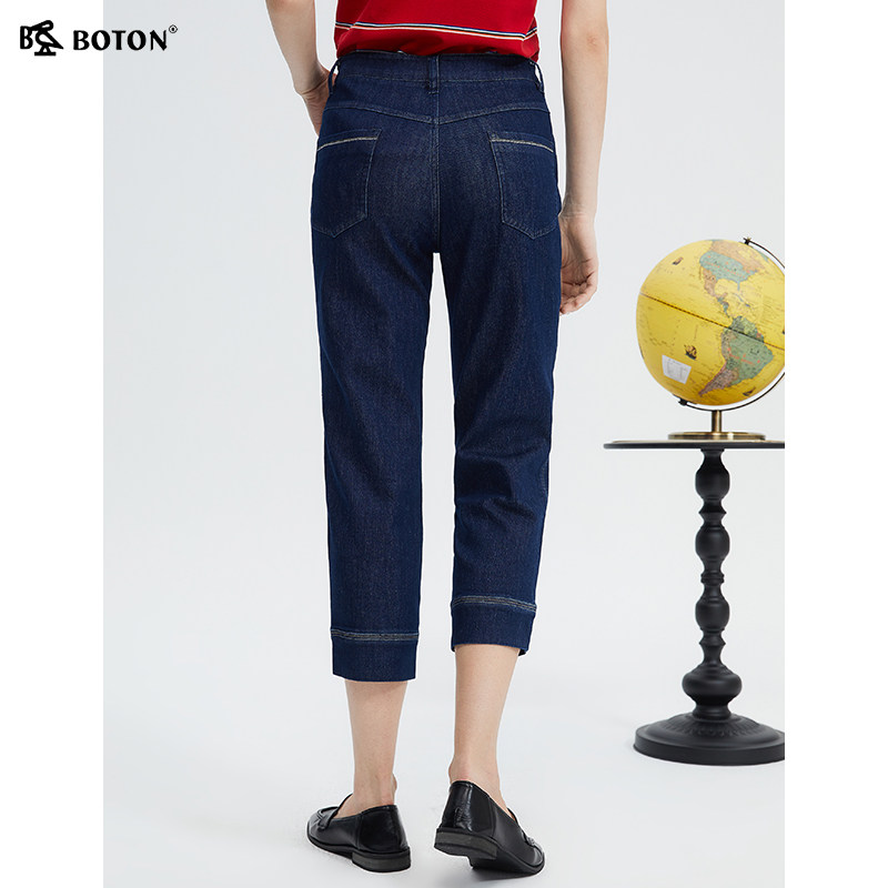 【醋酸凉感】波顿女士2025年新款深蓝色直筒七分牛仔裤美式休闲裤