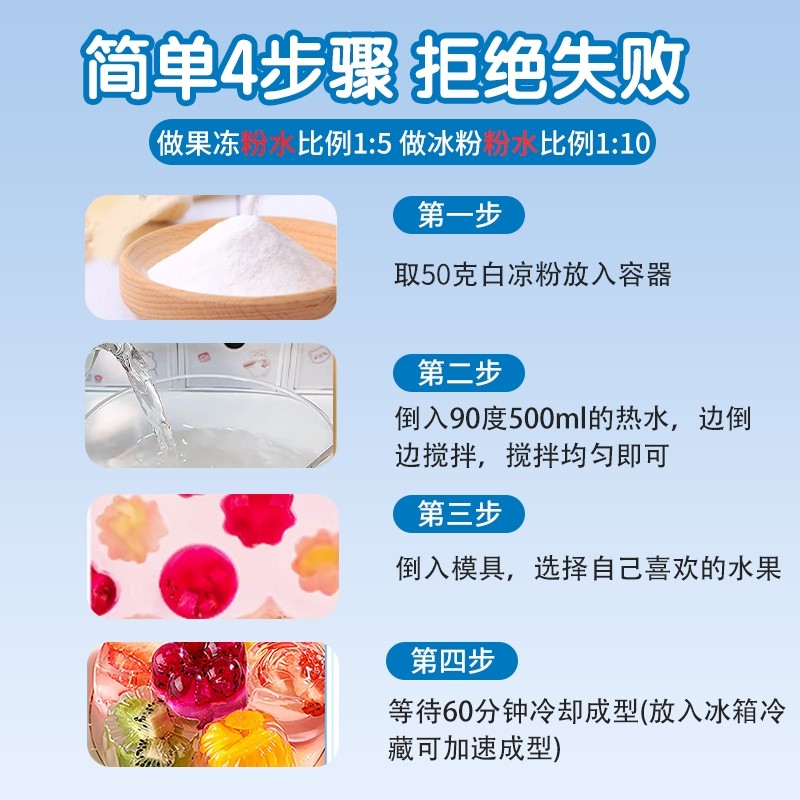 北京同仁堂白凉粉冰粉粉免煮做果冻专用粉自制烧仙草粉布丁商用bz