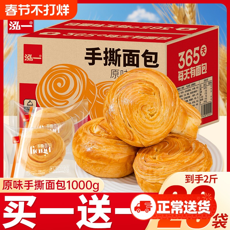 泓一面包手撕整箱1kg早餐蛋糕学生零食休闲食品好吃无蔗糖原味