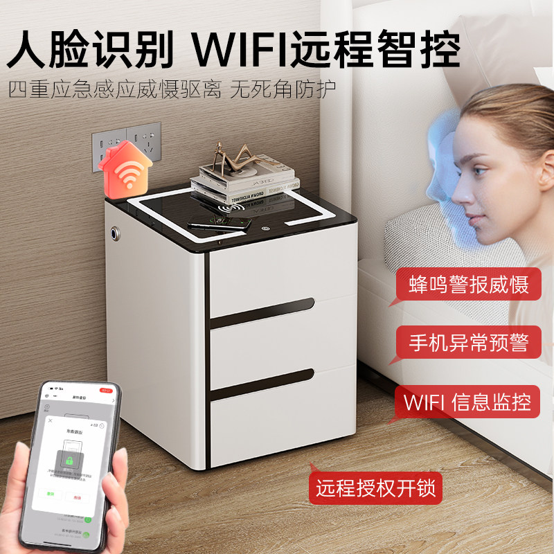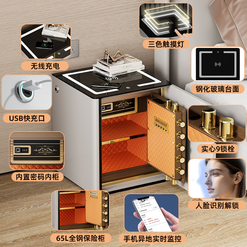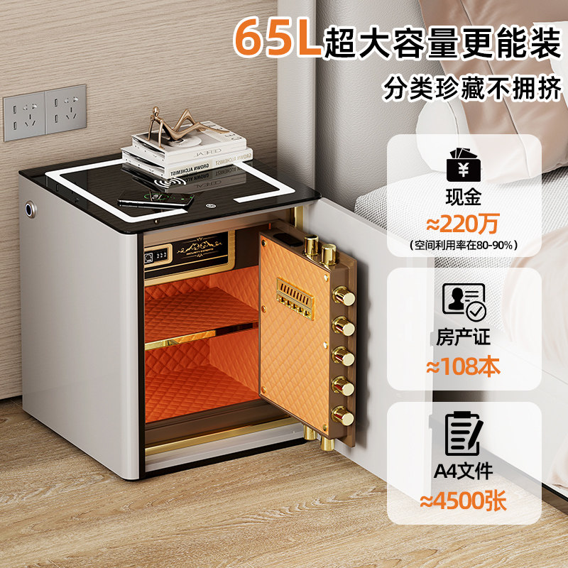 保险柜家用2026新款虎牌保险箱家用床头柜一体柜防盗智能简约大空间指纹密码箱加宽加深设计隐藏式带无线充电