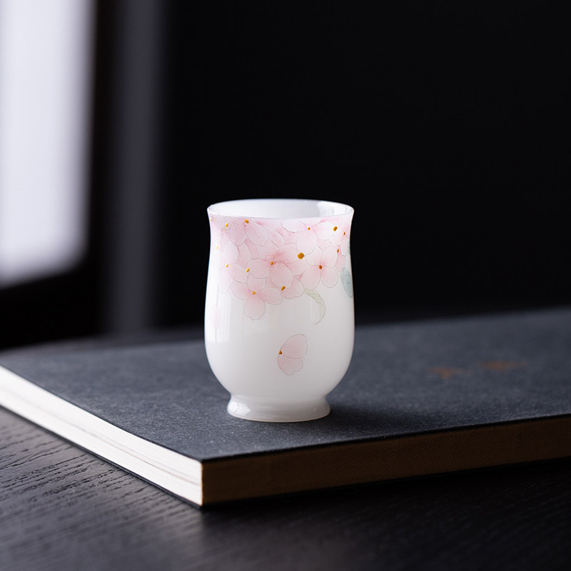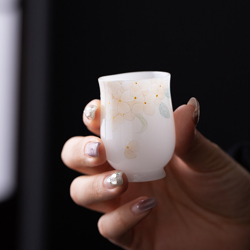德化白瓷绣球花手绘茶杯女士个人专用主人杯陶瓷品茗杯冰种玉瓷
