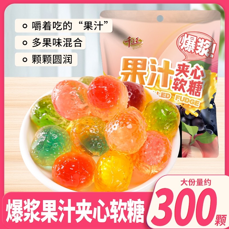 爆浆软糖网红糖果喜糖水果糖零食六一儿童节大礼包盒葡萄夹心混合