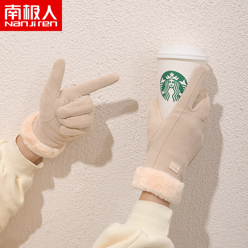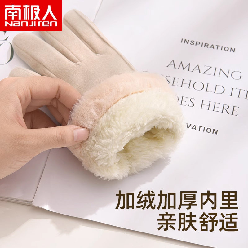 德绒手套女士冬天加绒保暖户外东北开车防寒手套男冬季骑行可触屏