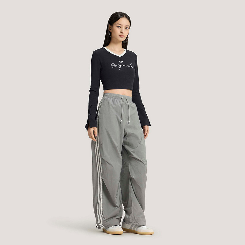 adidas阿迪达斯三叶草珠饰点缀宽松阔腿运动裤春女梭织长裤KS2866
