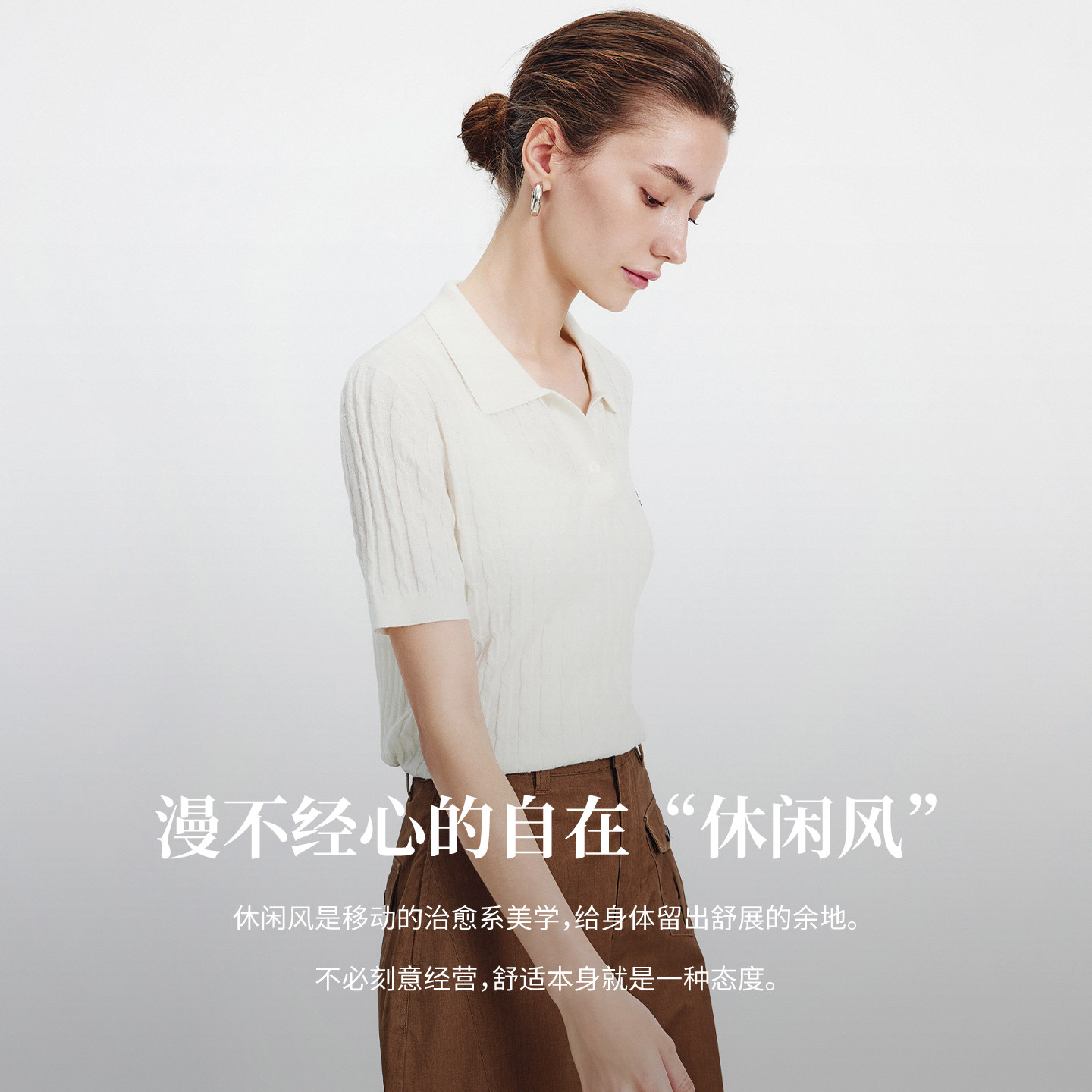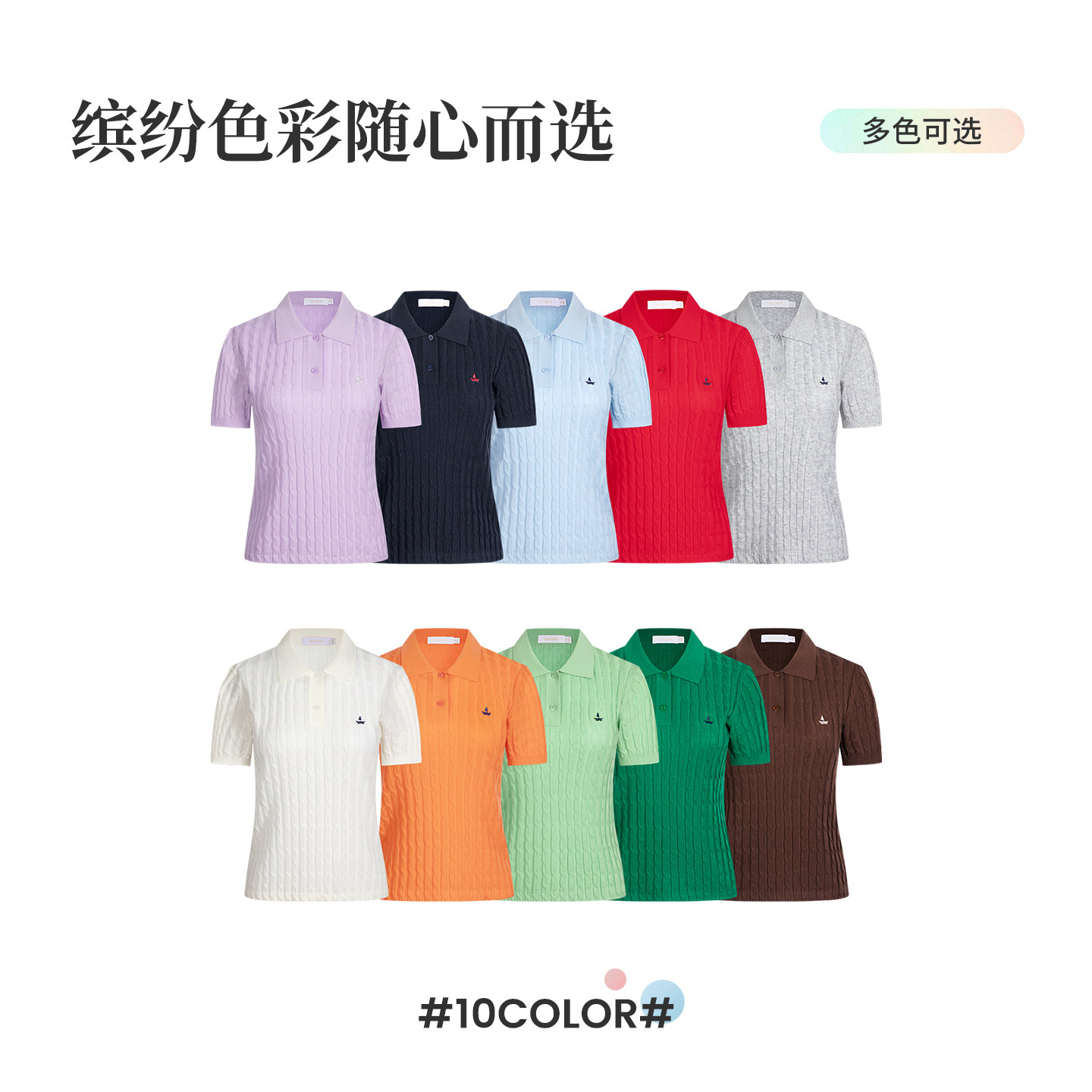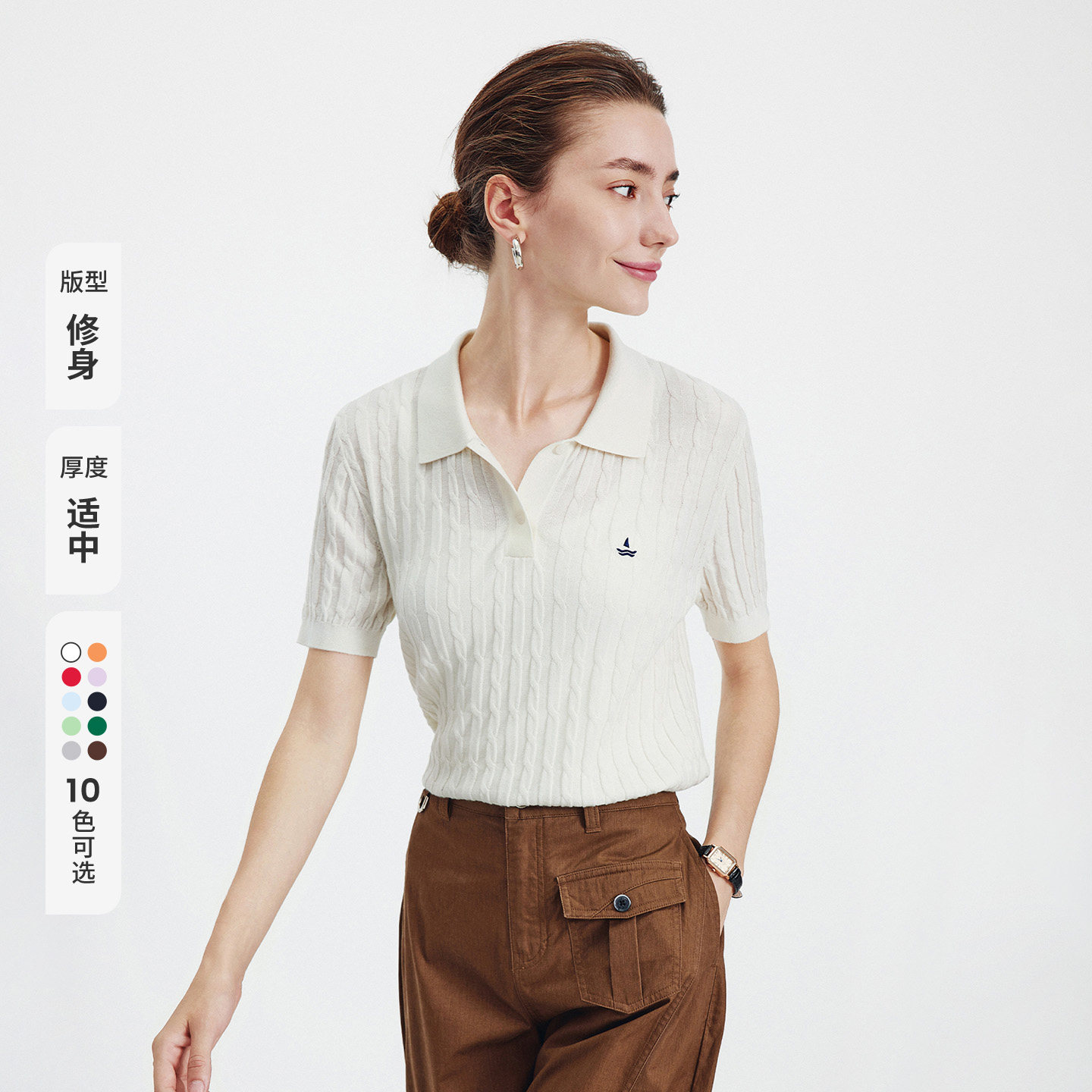 Navigare意大利小帆船白色绞花针织衫女短袖2026春夏修身POLO衫