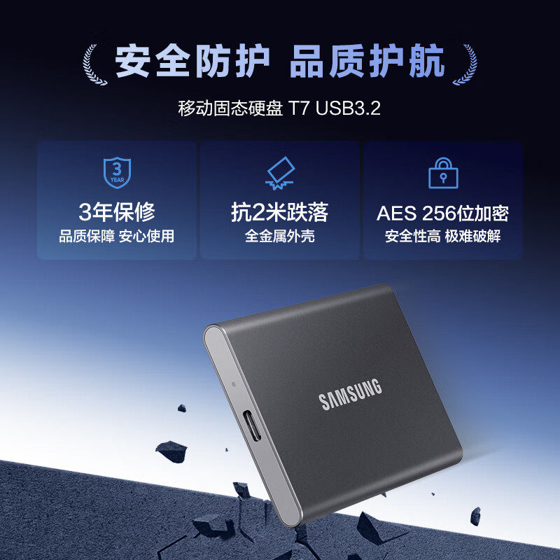 三星T7移动固态硬盘1T/2T/4T高速苹果mac电脑手机type-c外接实况