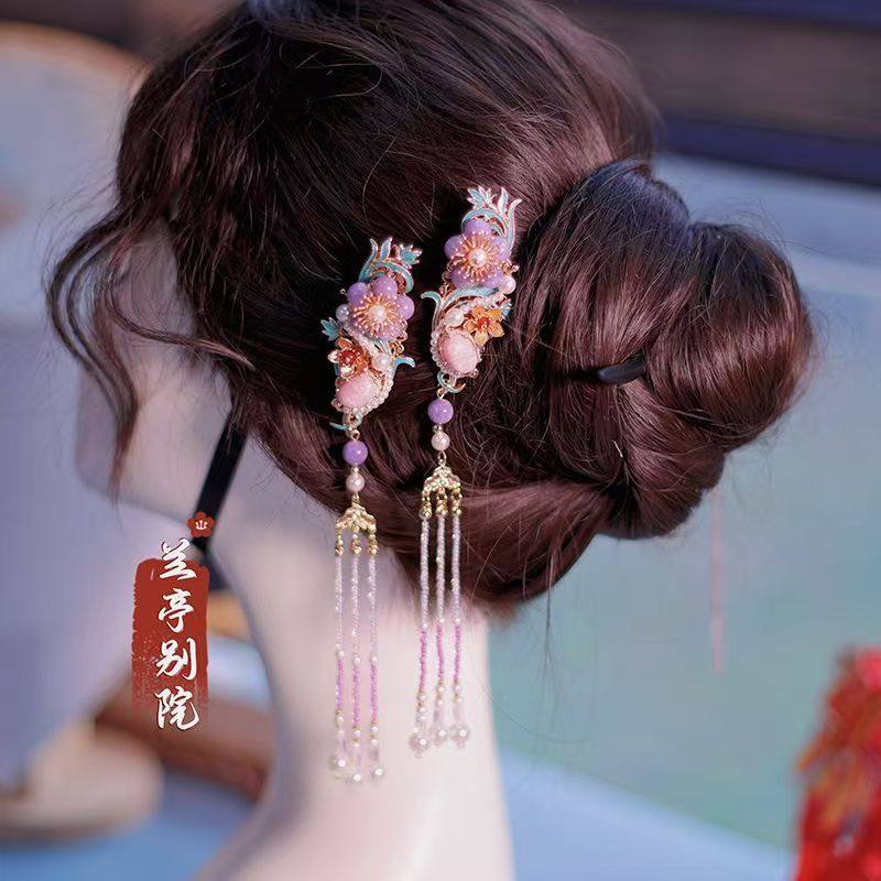 精致新中式汉服花朵头饰发饰旗袍发卡发夹女生侧边夹古风仙气配饰