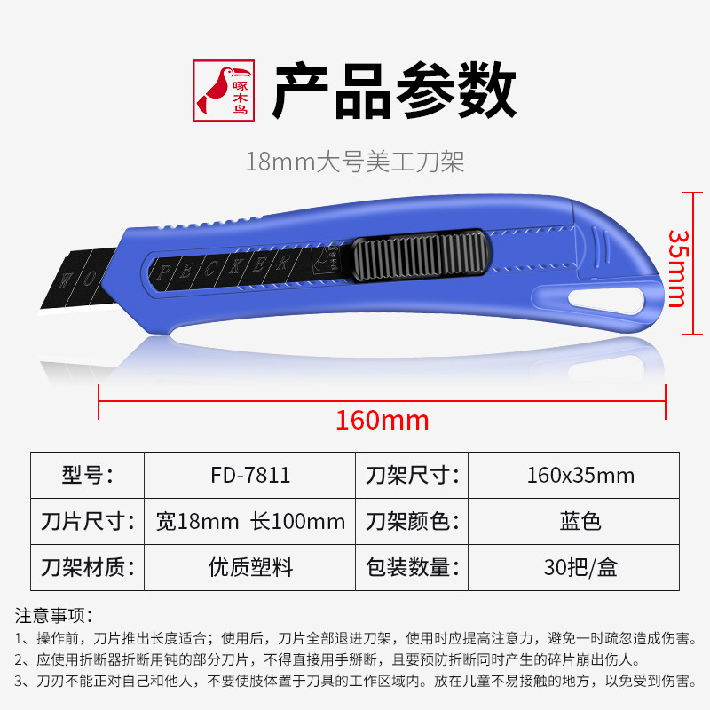 啄木鸟大号美工刀FD-7811全塑料刀架介刀壁纸裁纸刀片割纸刀ABS