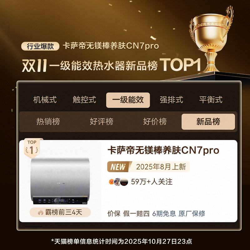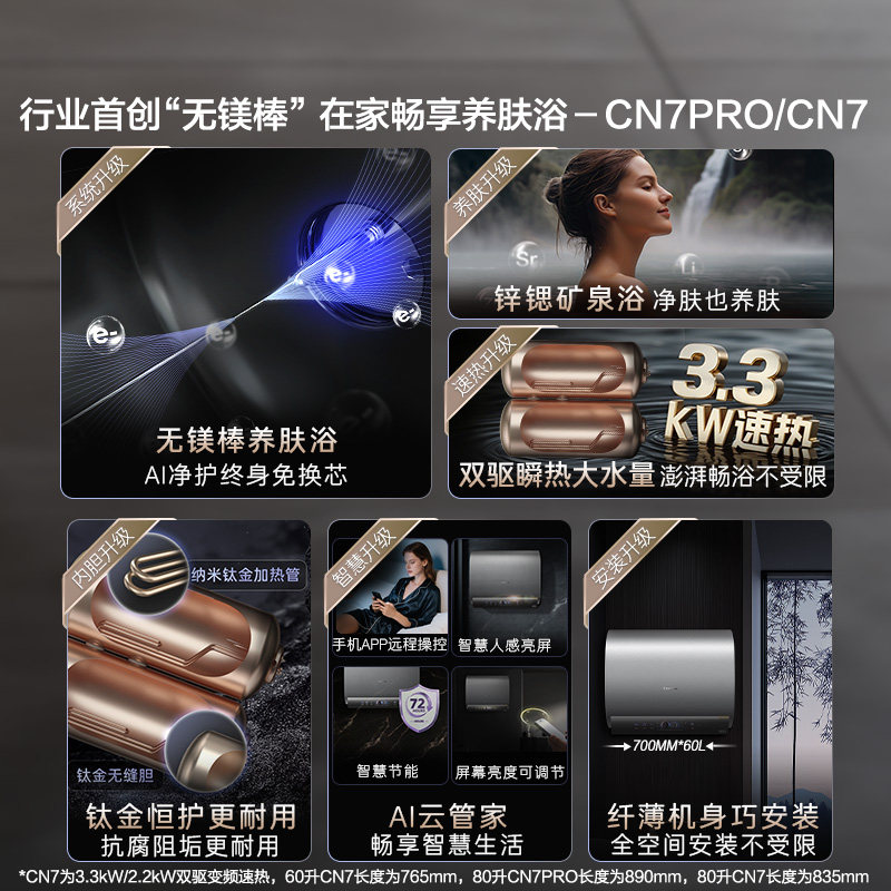 [换新补贴]卡萨帝电热水器官方家用双胆扁桶变频富锶无镁棒CN7pro