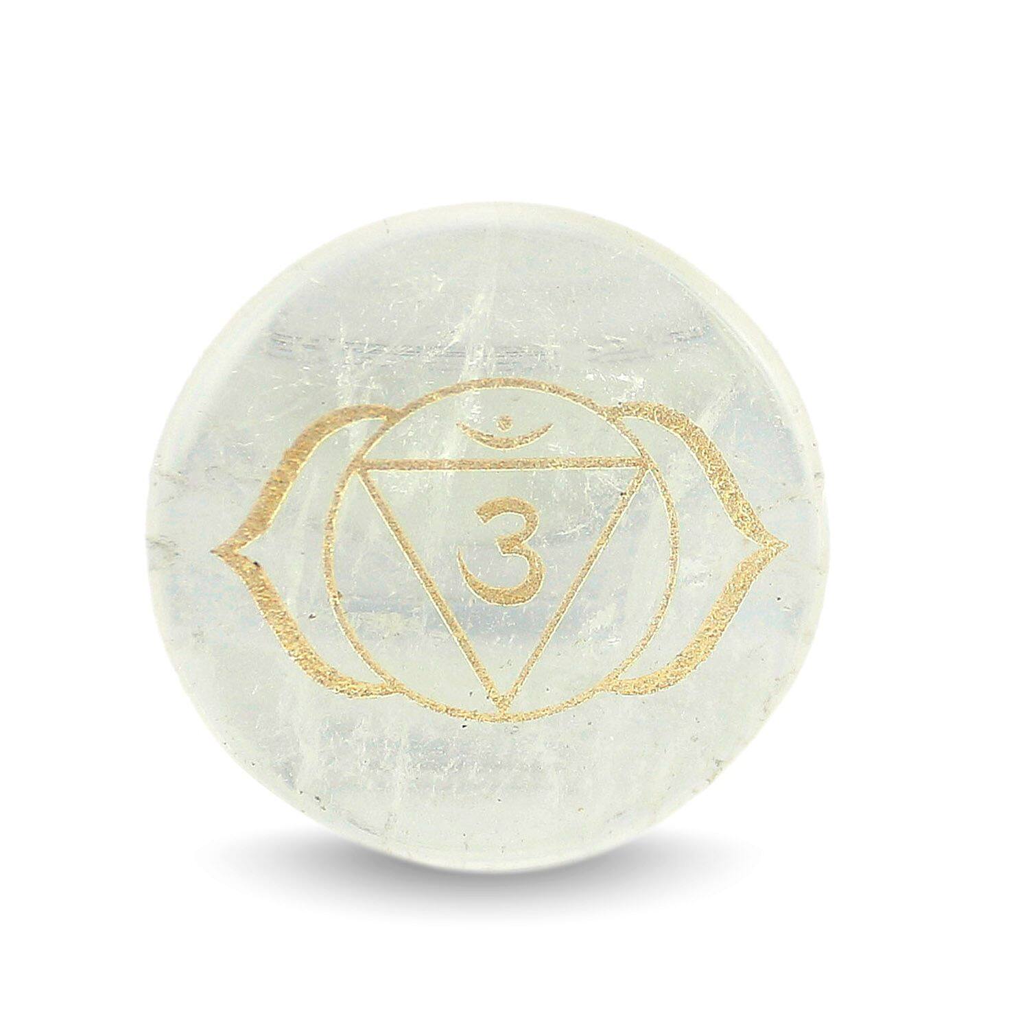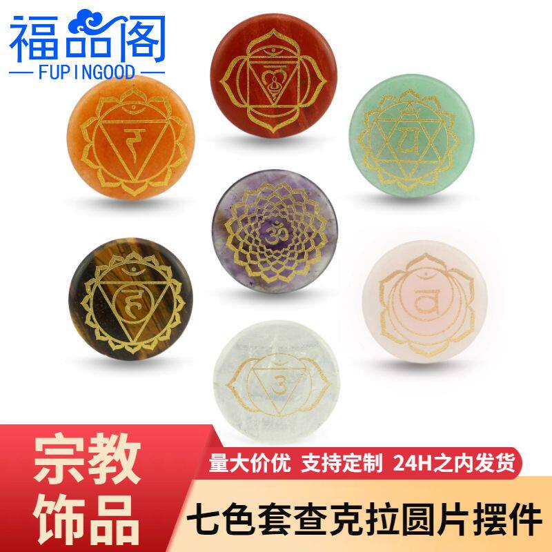 欧美天然粉水晶饰品配件圆片雕刻查克拉瑜伽符号水晶摆件