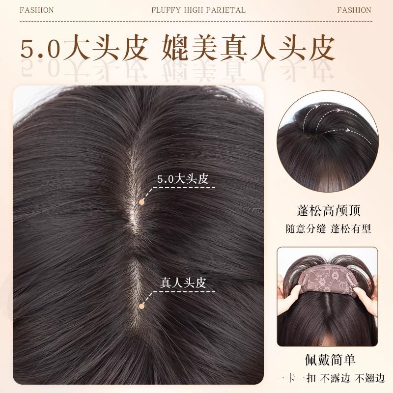 不用戴发网假发女片头顶补发增发量蓬松高颅顶遮白发大波浪长卷发