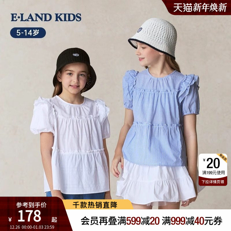 eland kids衣恋童装女童衬衣2025年夏新品学院风复古花边圆领衬衫