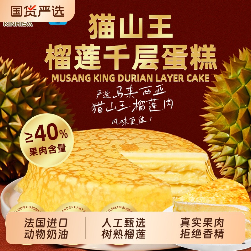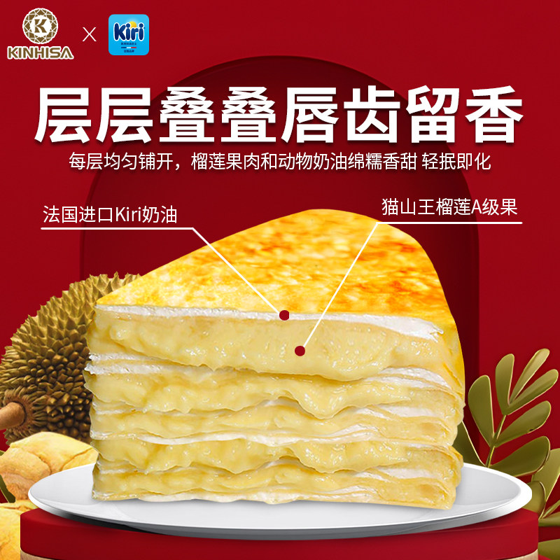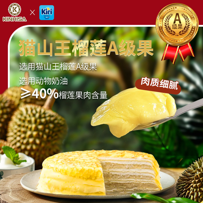 kinhisa联名猫山王榴莲千层蛋糕纯动物奶油生日蛋糕下午茶