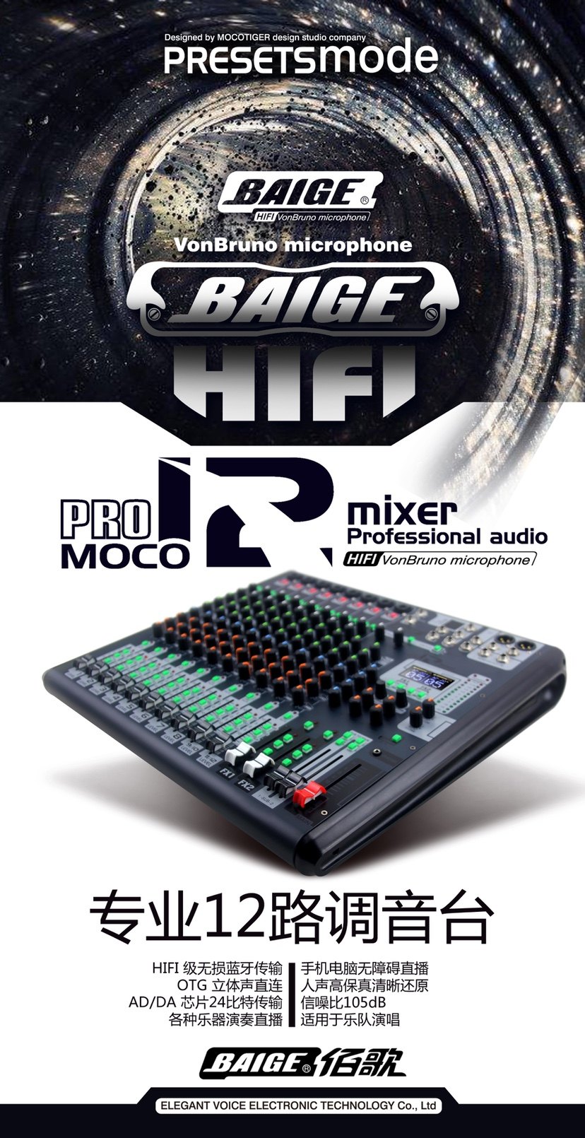 佰歌MOCO12直播扩音调音台演出乐队直播OTG直连AD/DA芯片高清音质