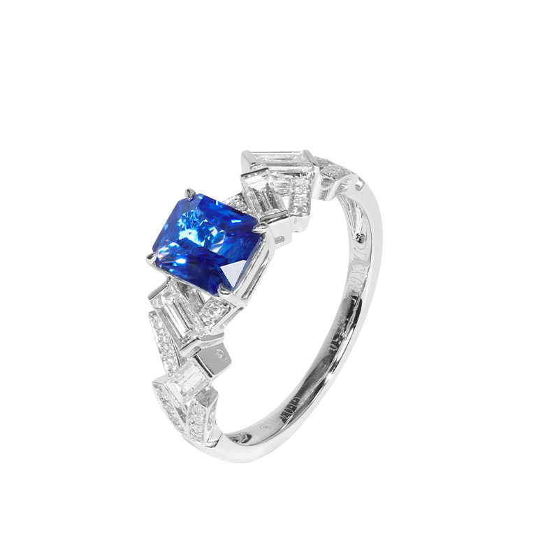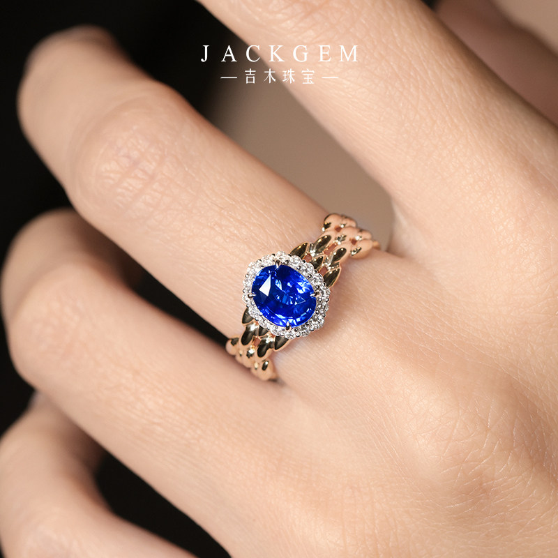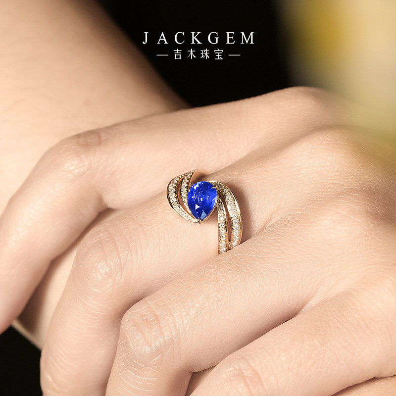 【星月夜2】蓝宝石戒指女彩色宝石戒指18K金钻石戒指蓝钻戒指金E1