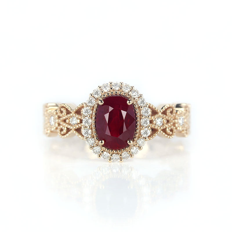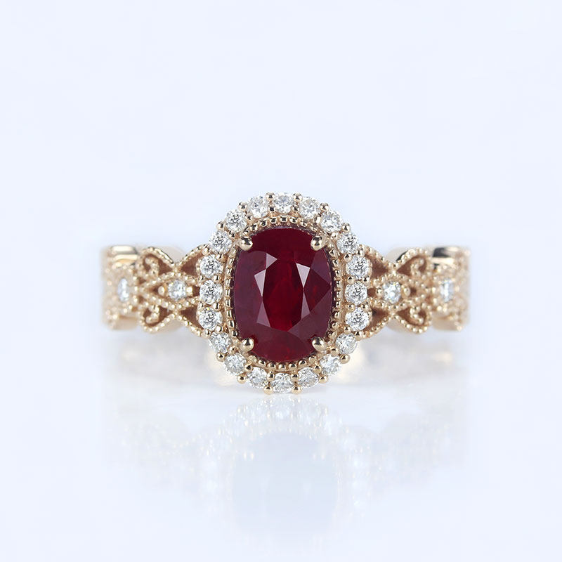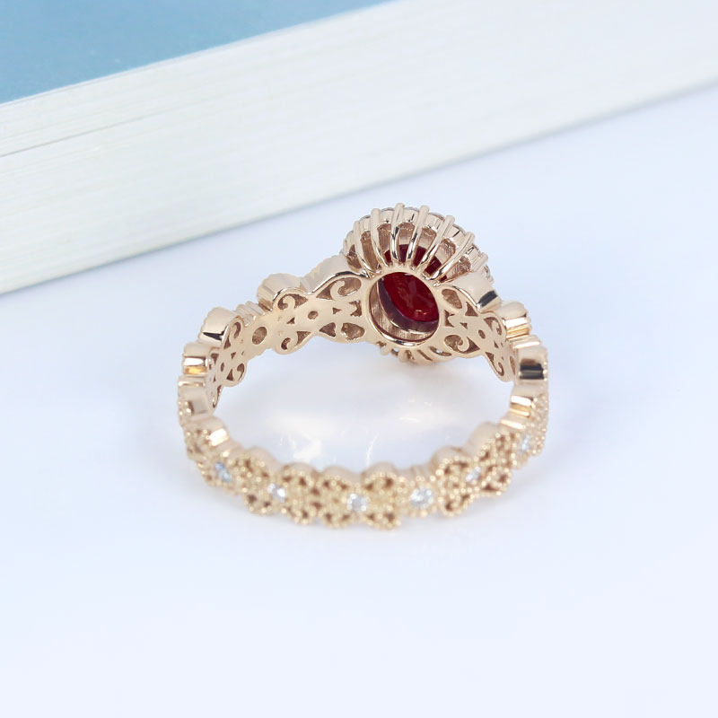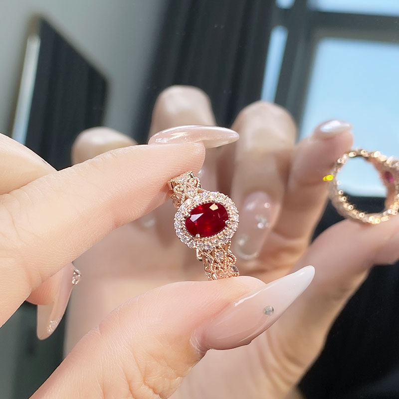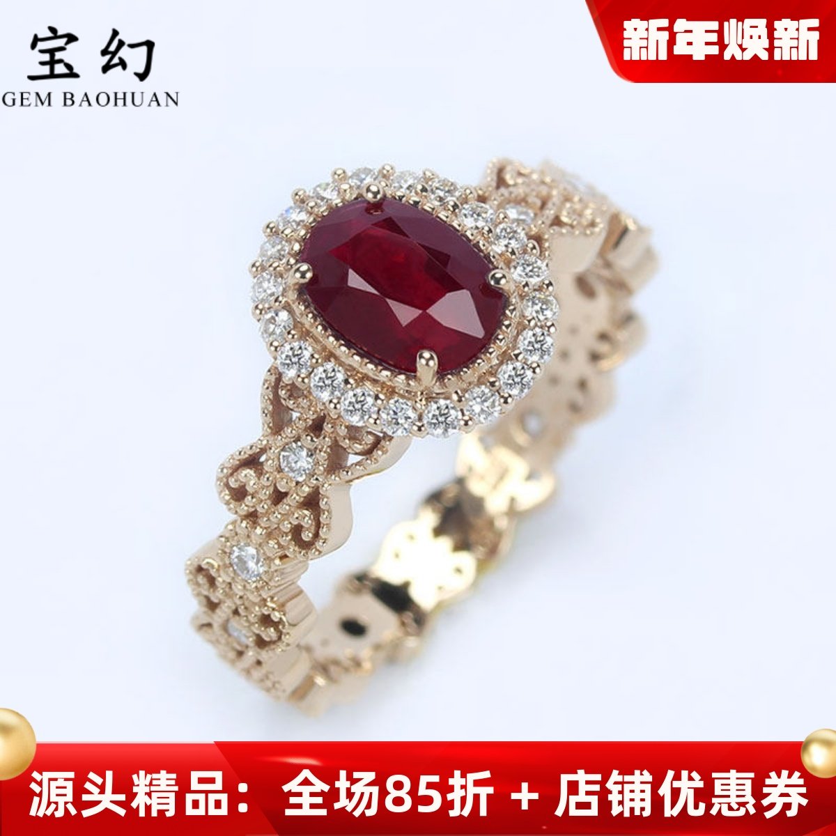 满圈18K玫瑰金缅甸天然鸽血红宝石钻石蕾丝戒指 复古女吉尔德证书
