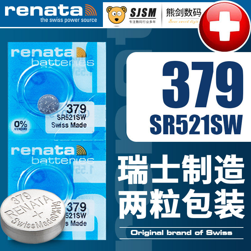 Renata瑞士379手表电池SR521SW适用浪琴CK精工飞亚达天王梅花原装纽扣电子通用LR521罗西尼LR69男女AG0石英