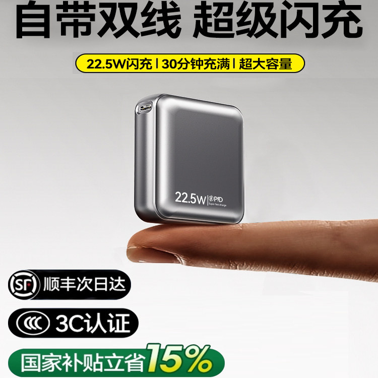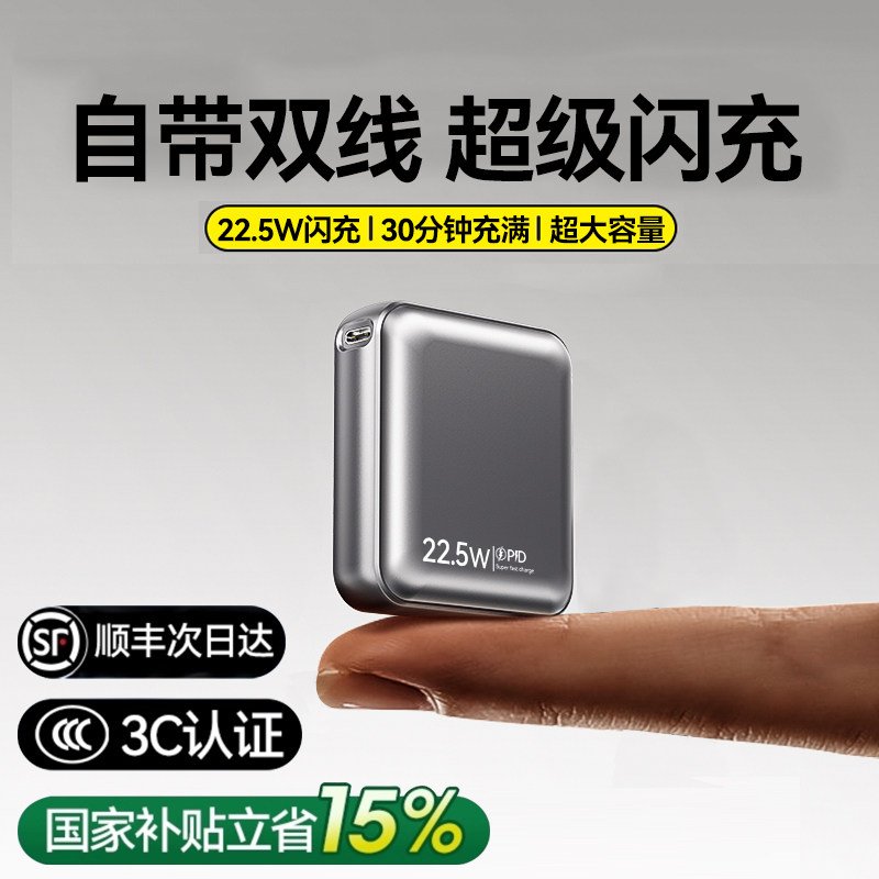 【充电宝3C认证可上飞机】政府补贴15%品胜mini小相机2025新款迷你超薄小巧便携自带线快充适用华为苹果小米
