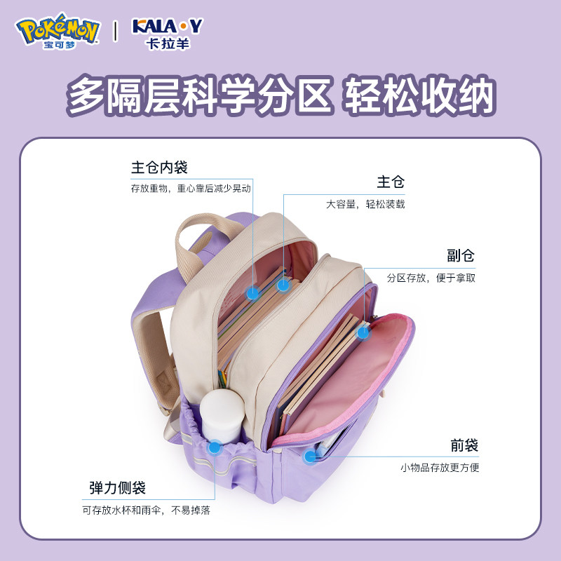 【宝可梦联名款】卡拉羊1-3-6年级风琴书包女轻便小学生男大容量减负幼升小送礼