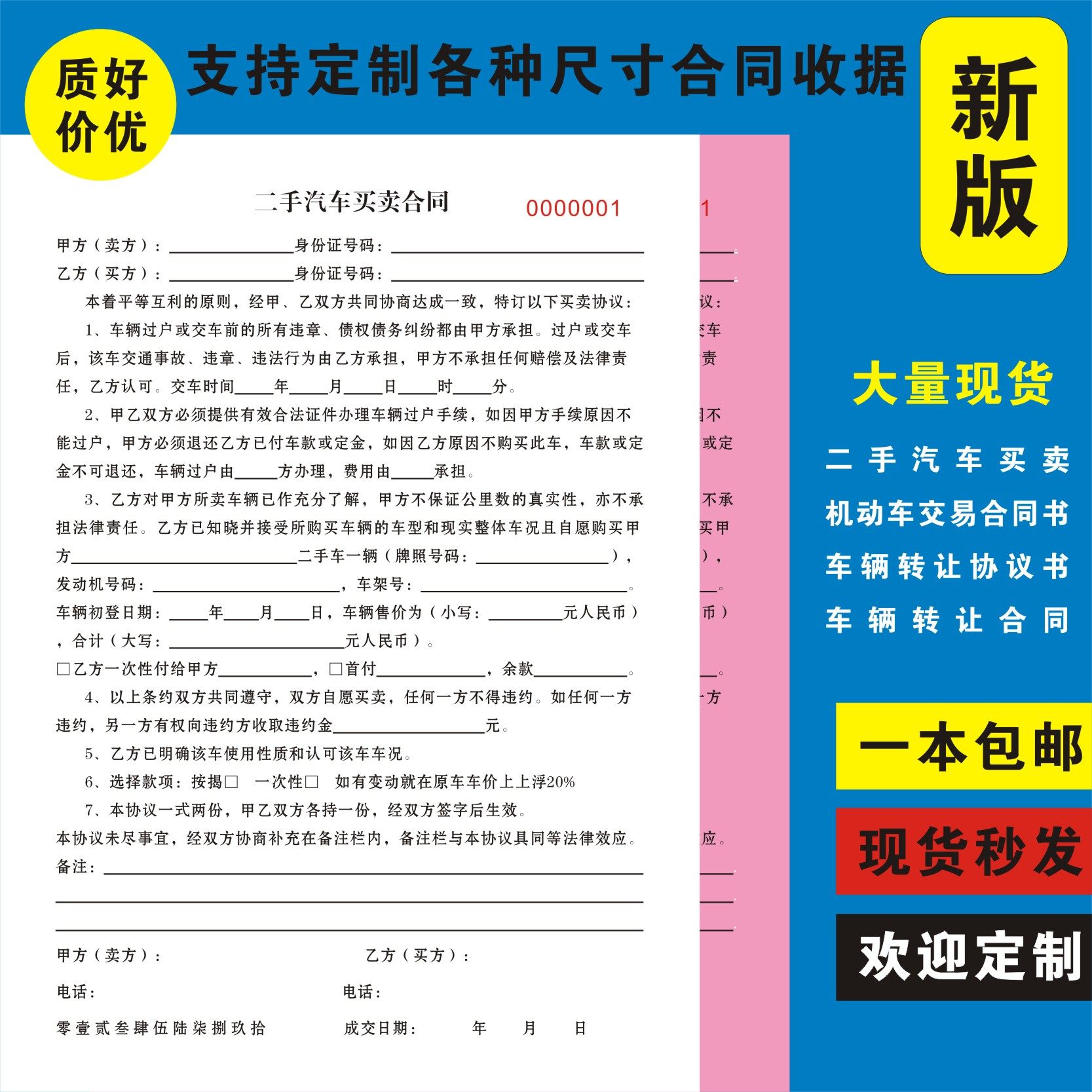 二手车买卖协议书合同定制购车销售机动车交易通用汽车辆转让二联单购车定金收据租赁销售报价单售车过户协议